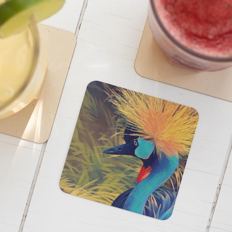 Coaster Set of 4 – CROWNED CRANE BLUE
