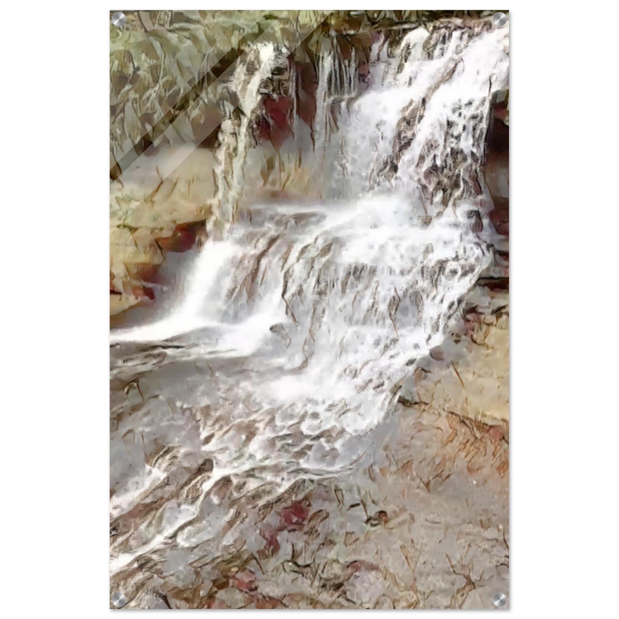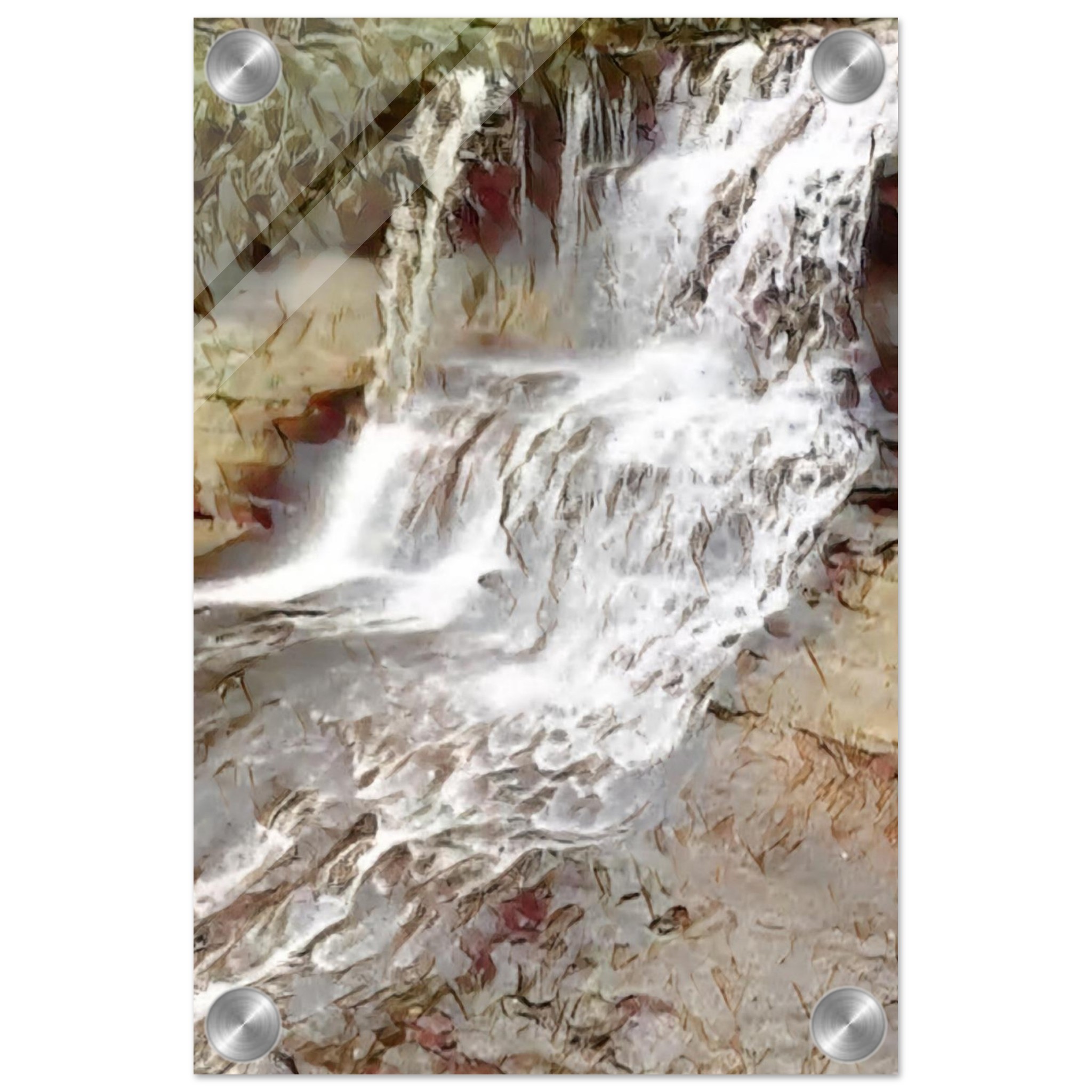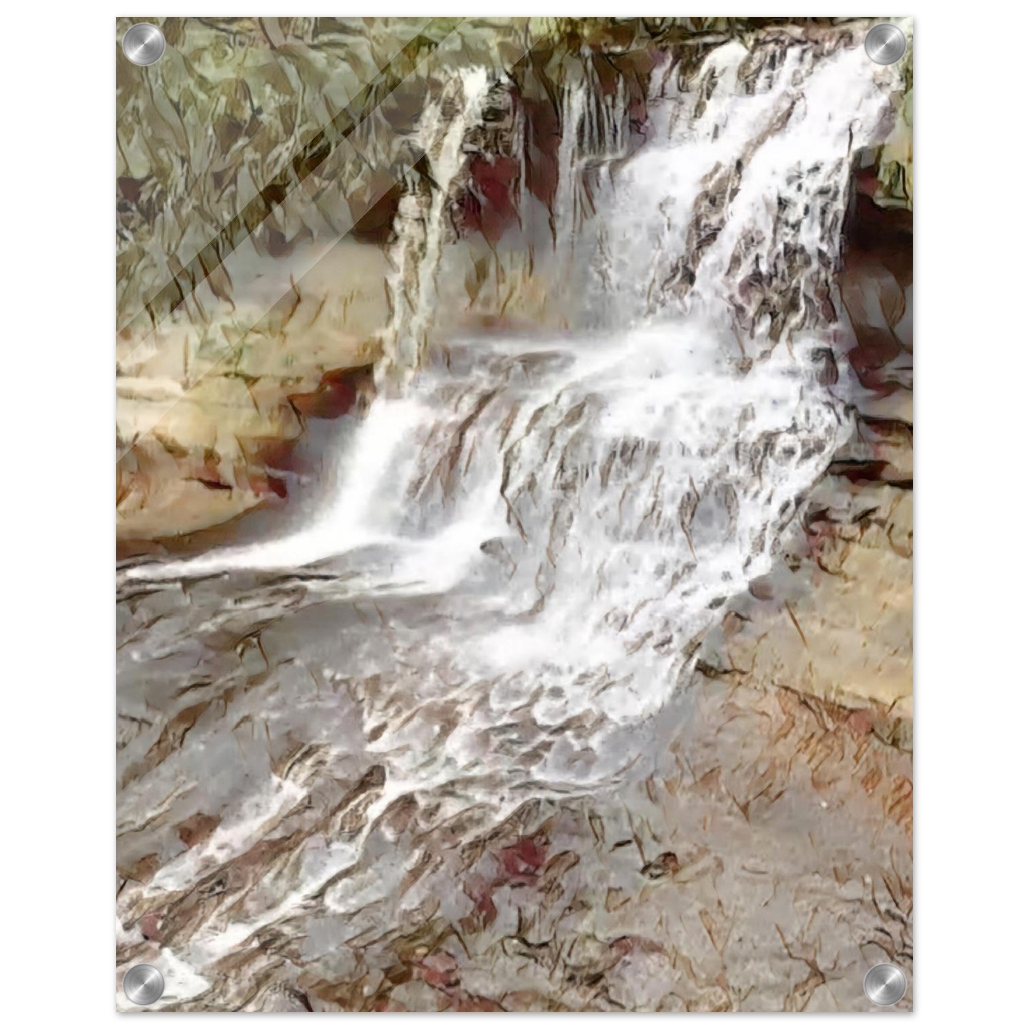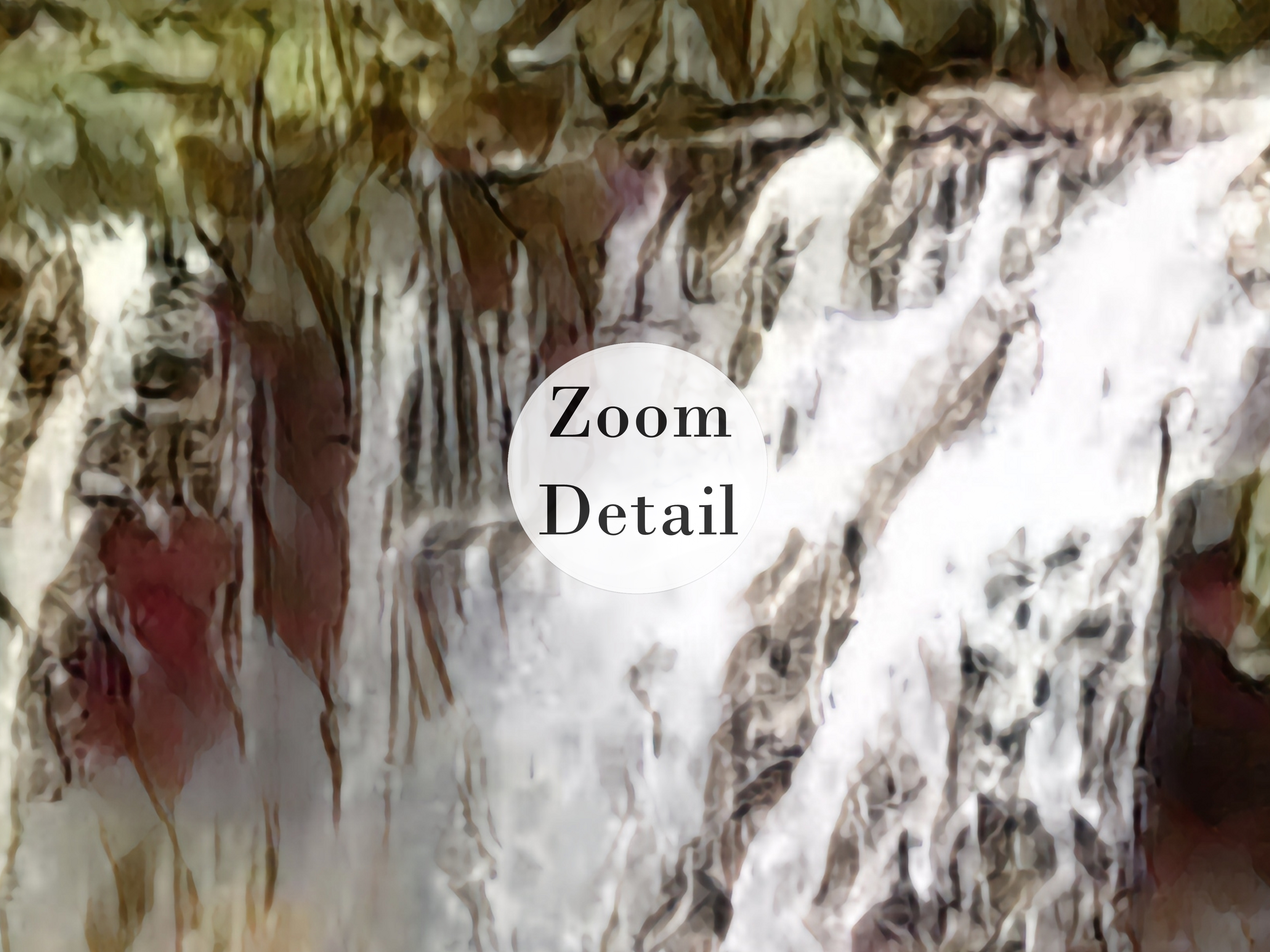 “Waterfall Watercolor” began as a photo of a sloping waterfall in the Upper Peninsula of Michigan. Now painted over with watercolor effects, this artwork is a calming and beautiful nature scene, awash in white.