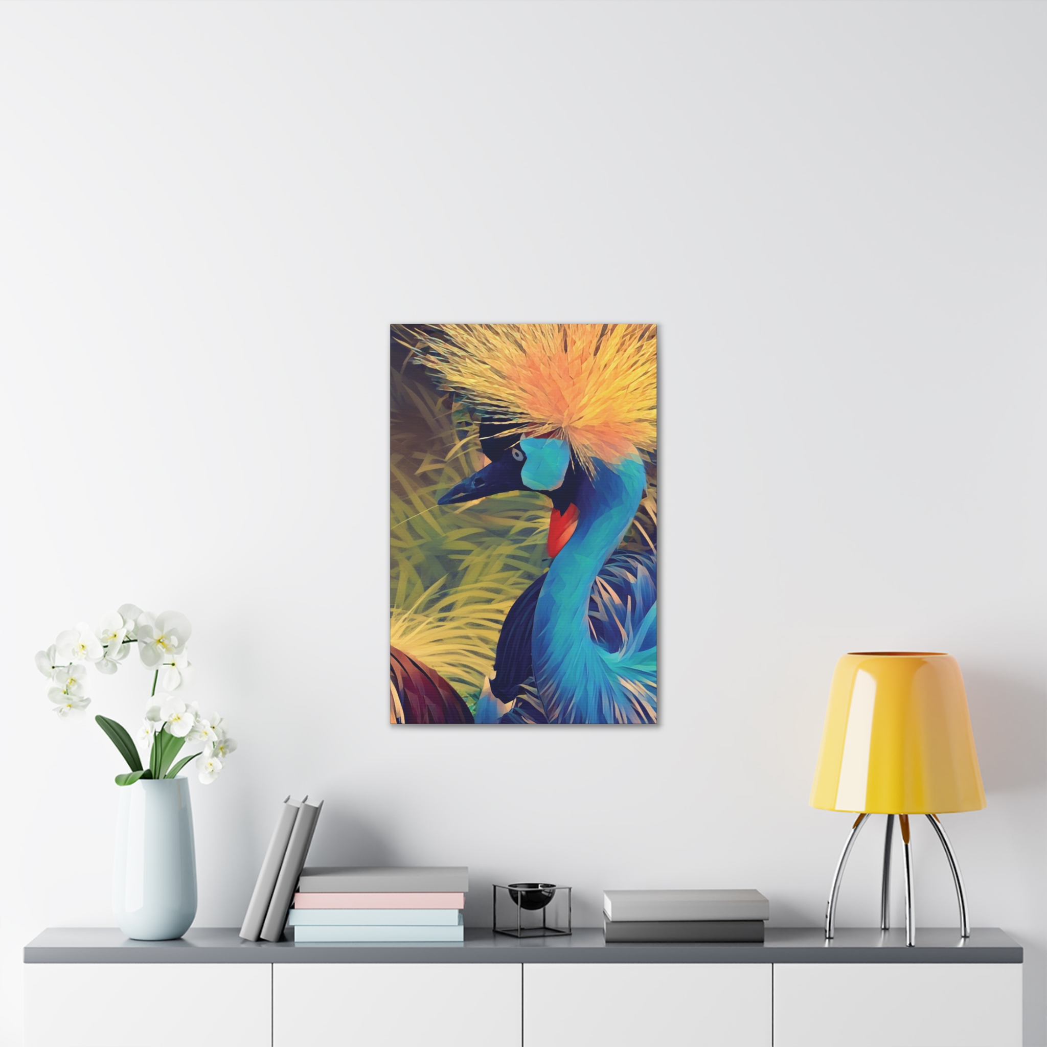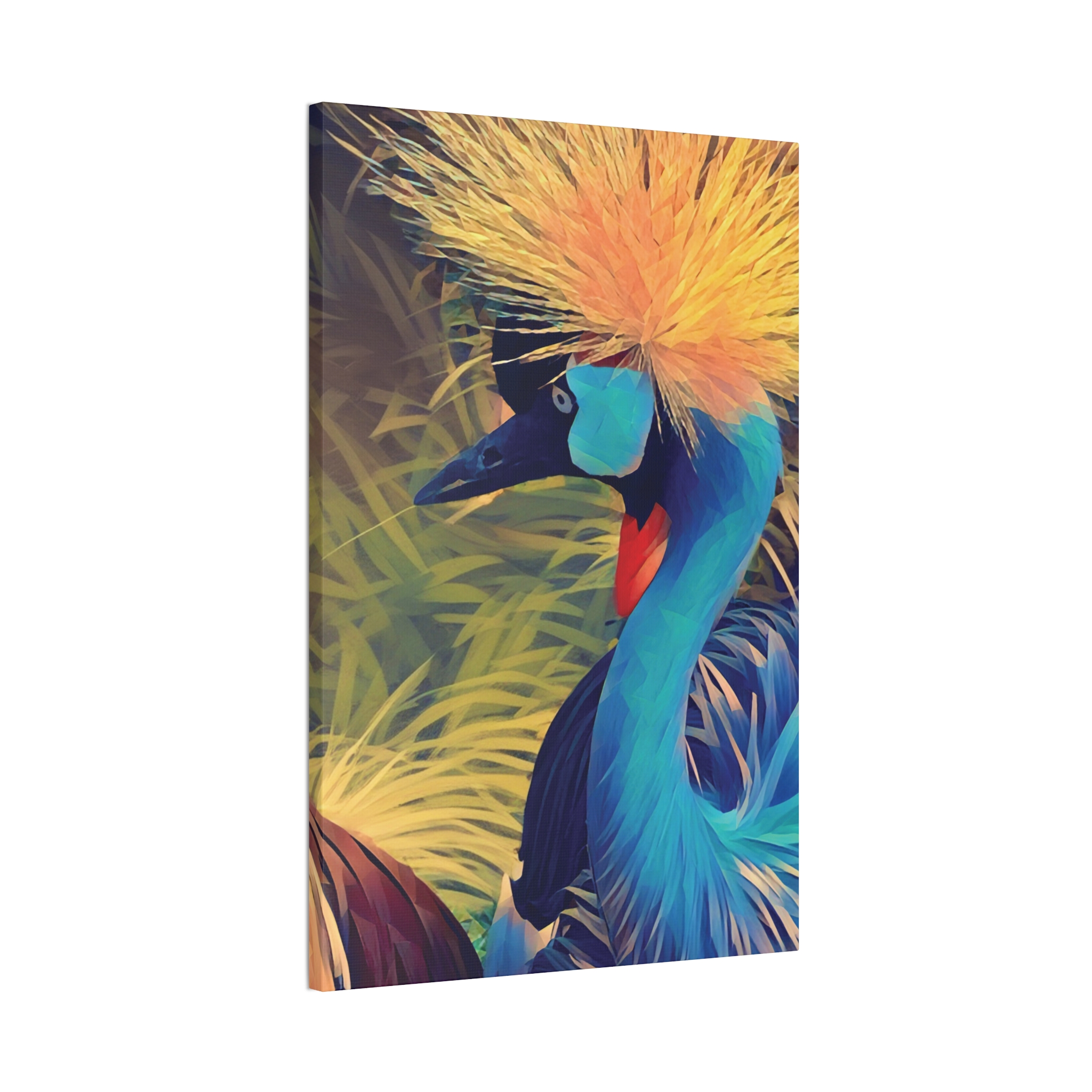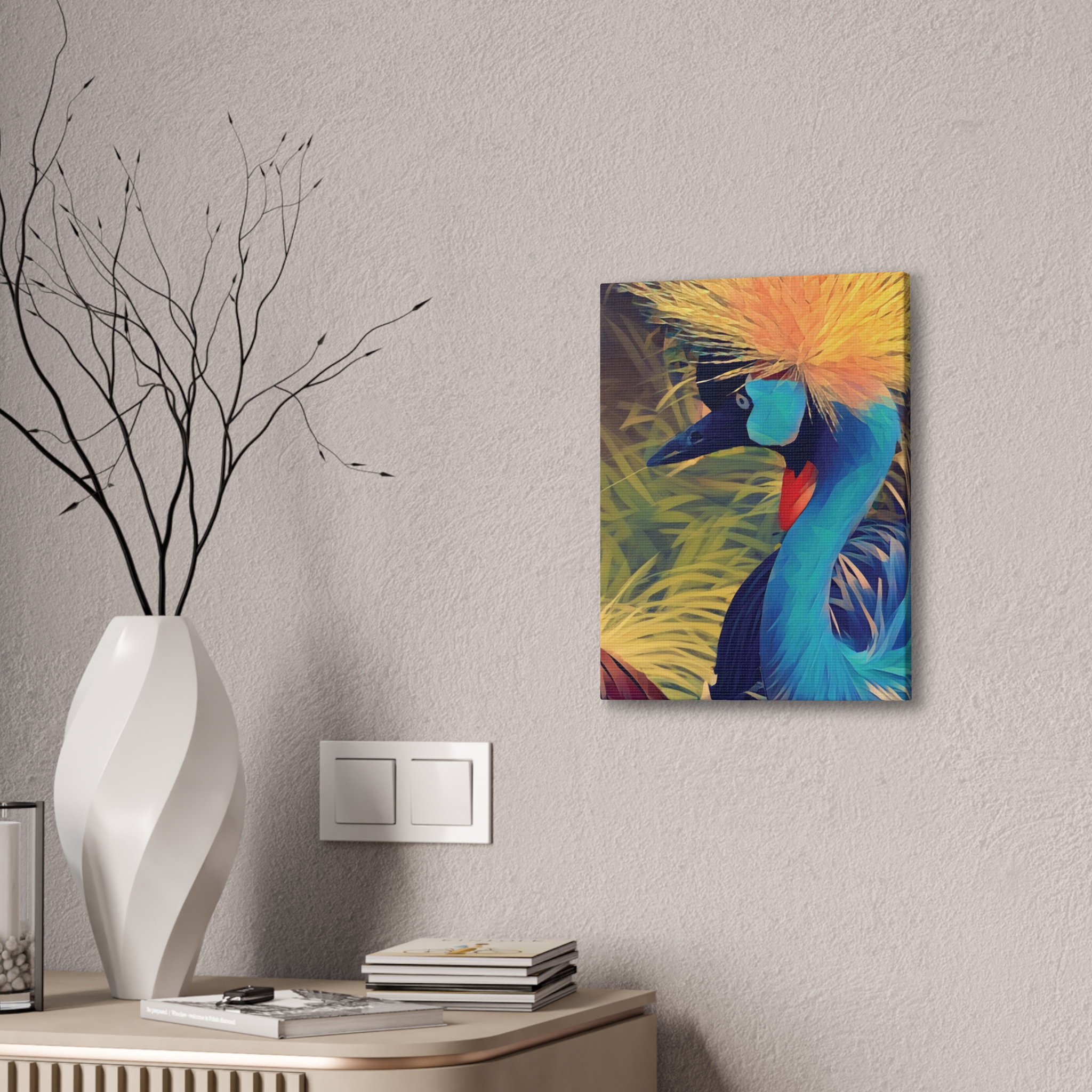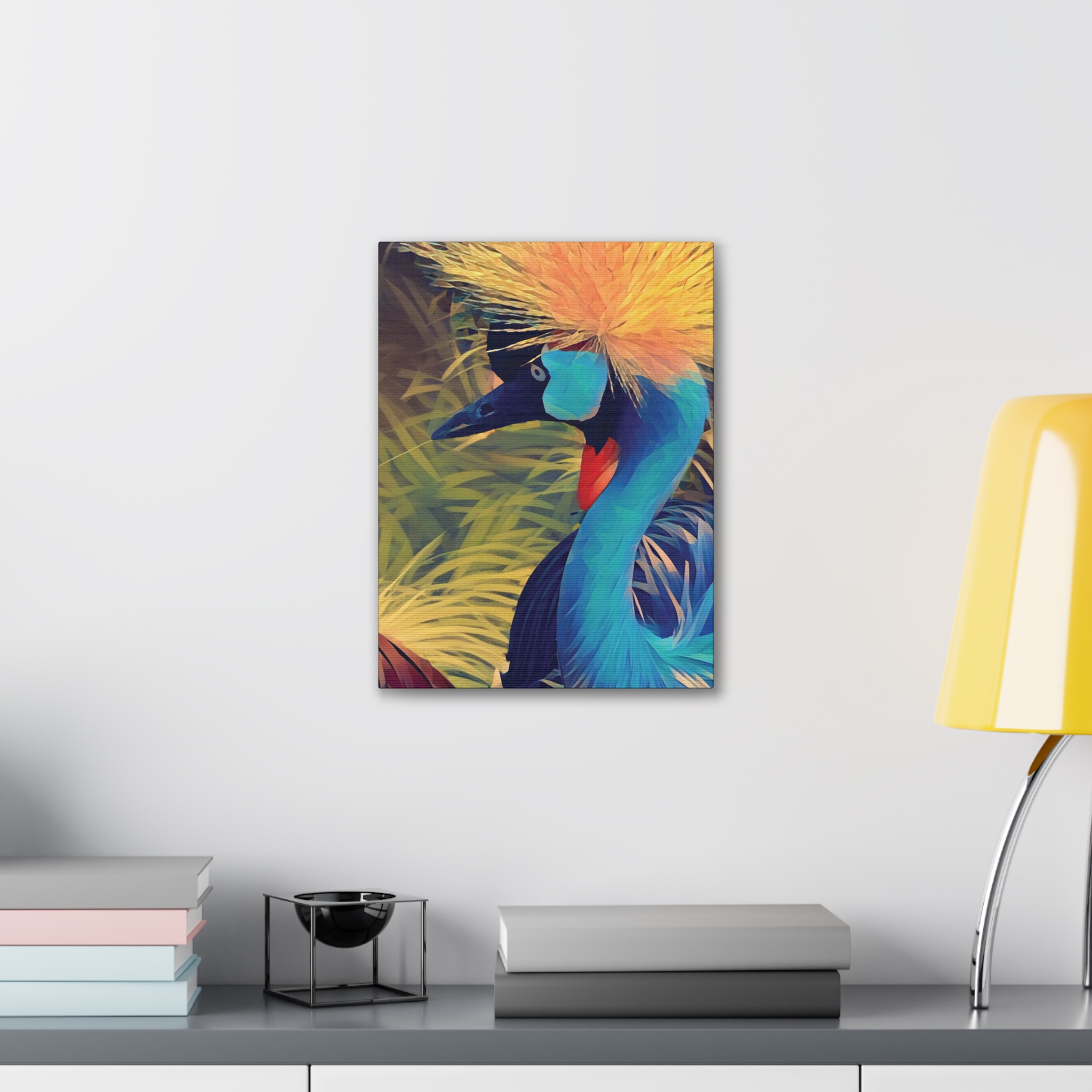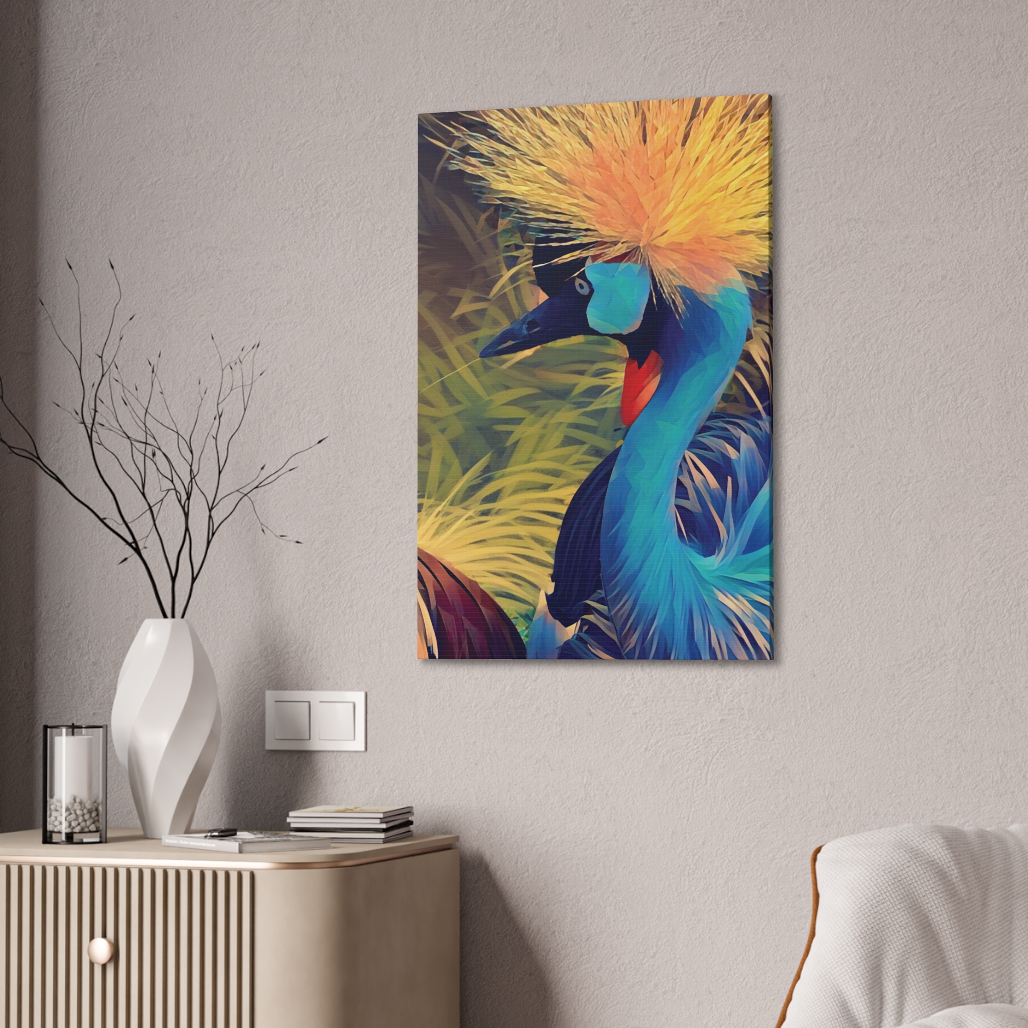 Bring a burst of color and wild charm to your walls with this stretched canvas print. The artwork captures a regal tropical bird in vivid teal, cobalt, and sunset gold ā brushstroke-like textures give it a painterly, slightly abstract feel that draws the eye. Mounted on a sturdy pinewood frame and finished with crisp, fade-resistant inks, this canvas adds lively energy to living rooms, entryways, studios, or any space craving a nature-inspired focal point. Lightweight and ready to hang with included hardware, it sits proudly on its 0.75″ stretcher bars while the print wrapping subtly continues around the edges for seamless visual flow.