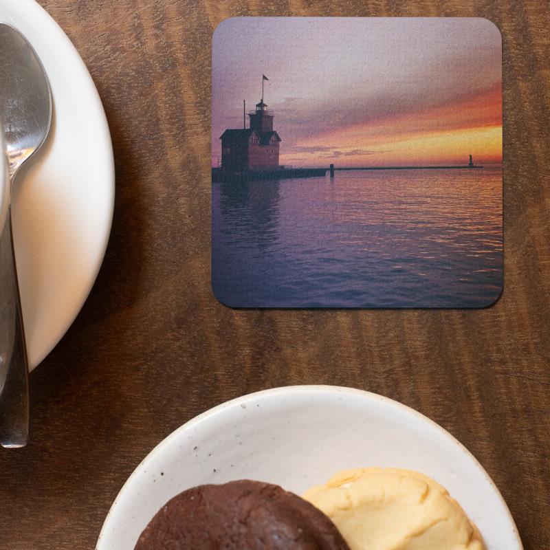 Add a lovely sunset scene to any living room, office, dining room, or anywhere you need to set a drink. Use these coasters alone, or complement with other items from the “Lighthouse Purple Night” Collection. Need more than 4? This set also pairs nicely with the coaster set from the “Lighthouse Pier” Collection.