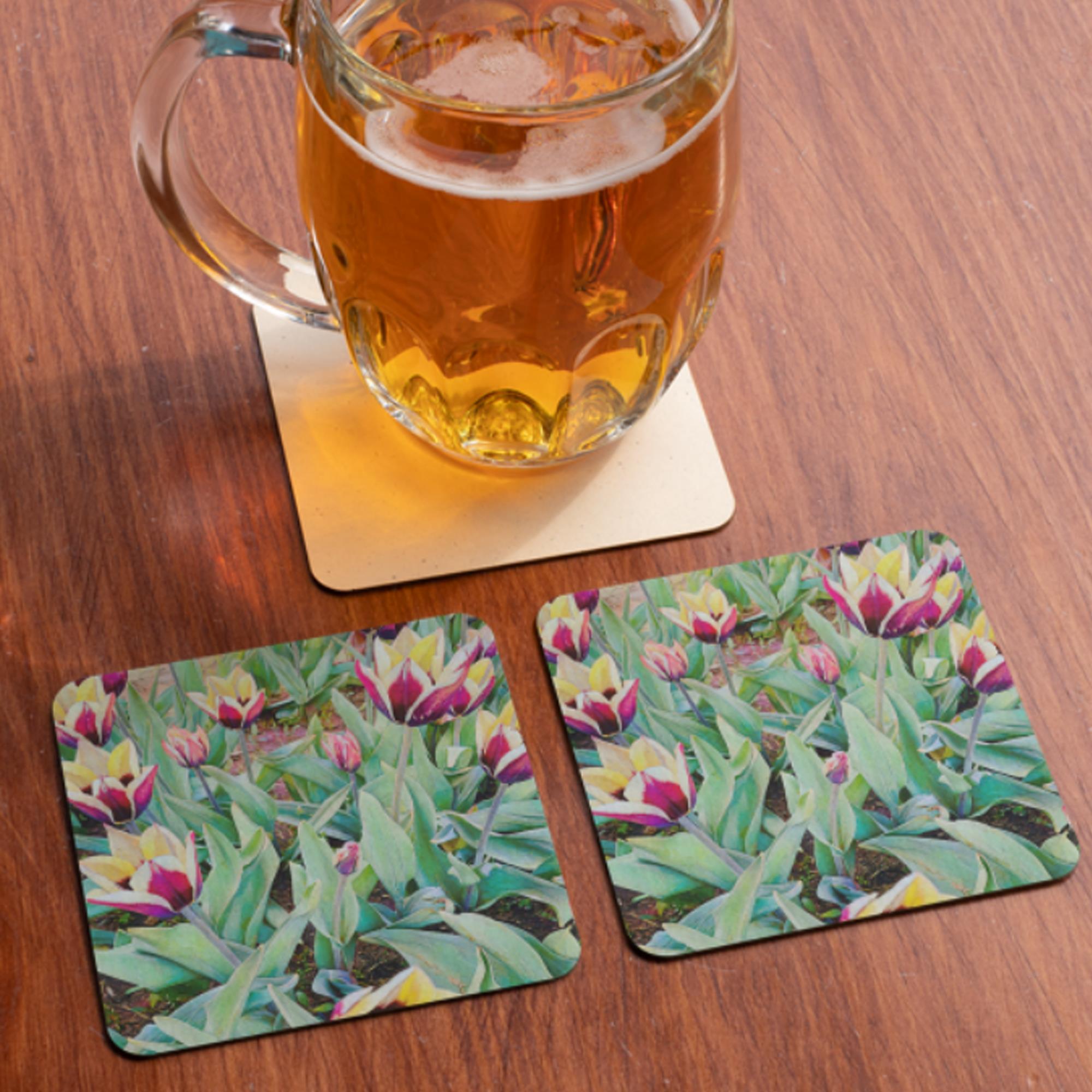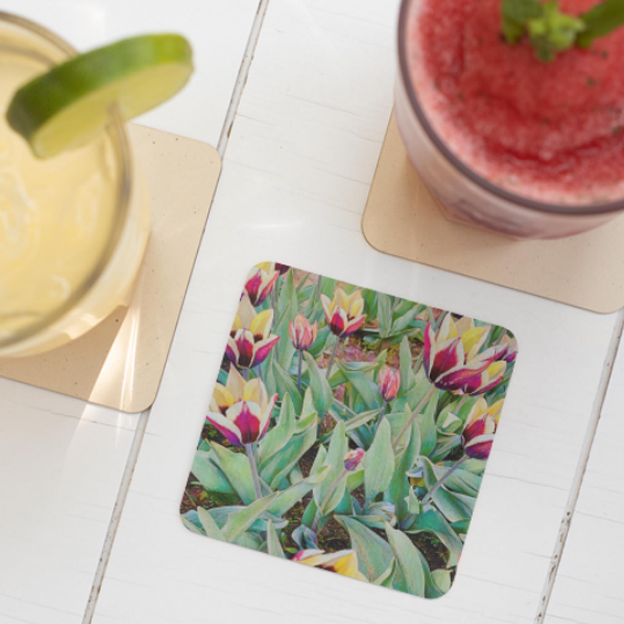 This pretty floral artwork is one of two coaster sets from the “Wild Bouquet” Collection. Use these coasters alone, mix and match with the other set, or complement with other items from the collection.