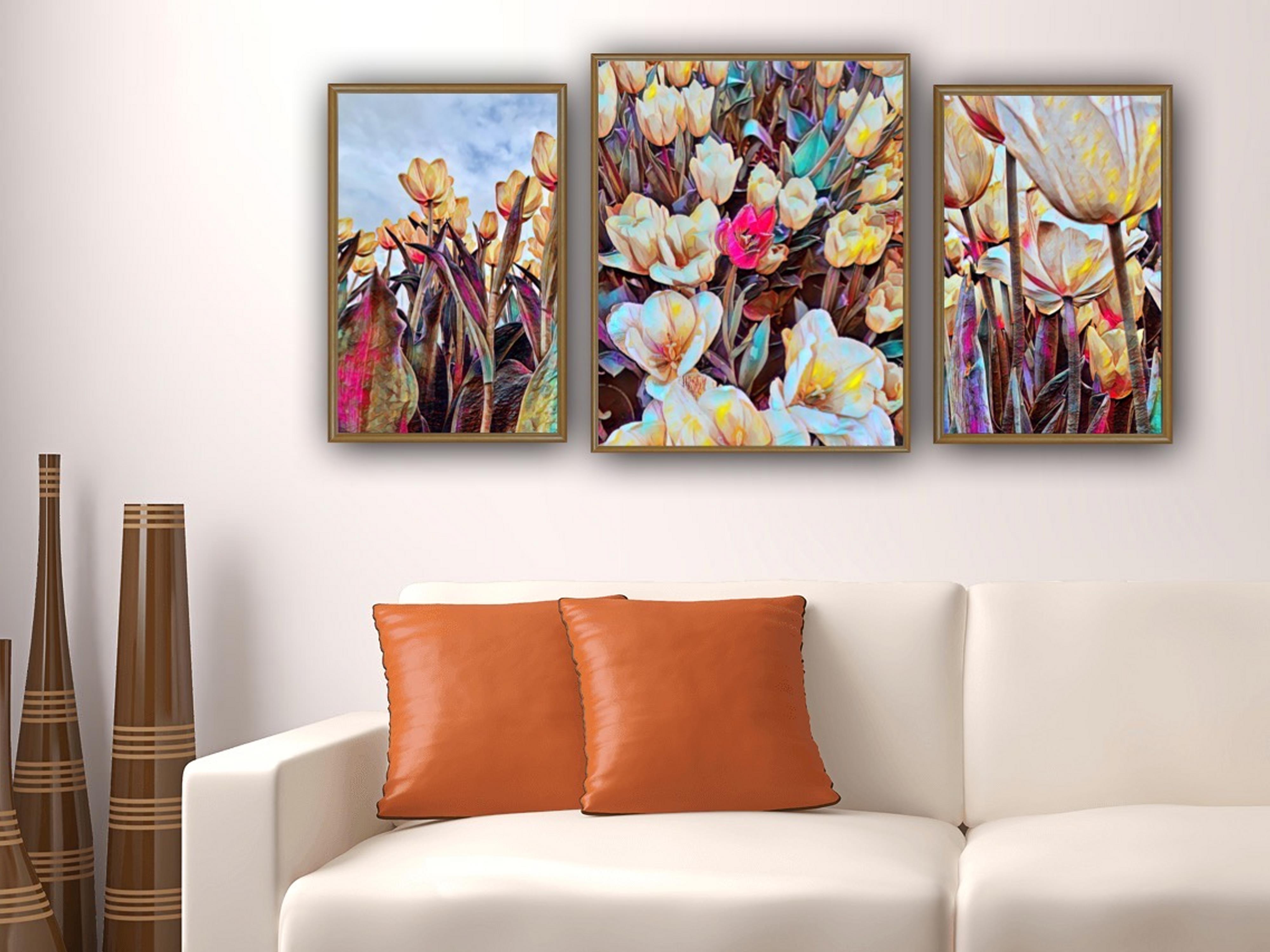 “Golden Tulips” started as photos taken during Holland’s Tulip Time Festival. Now with softened lines and intensified hues, these complementing photos are a beautiful artistic trio.