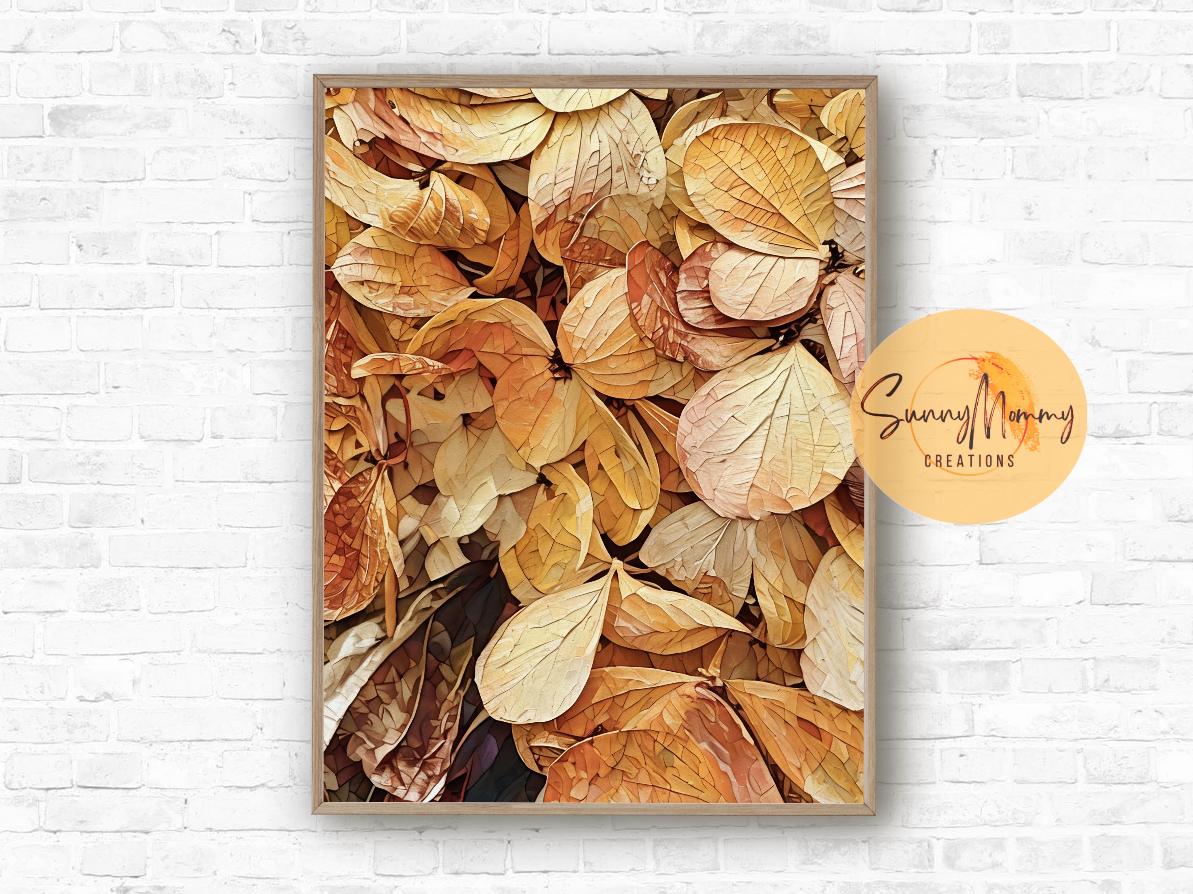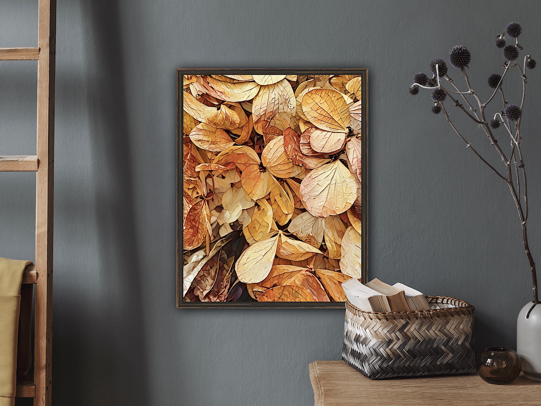 “Autumn Hydrangeas” is an artistically edited, close-up photo of a hydrangea flower at the end of the season, lightly painted rose gold. Now with enhanced autumn hues of gold and yellow, as well as defined leafy lines, this artwork is a great way to add a touch of Fall to any room. An extra nice feature – you can hang this poster vertically or horizontally.