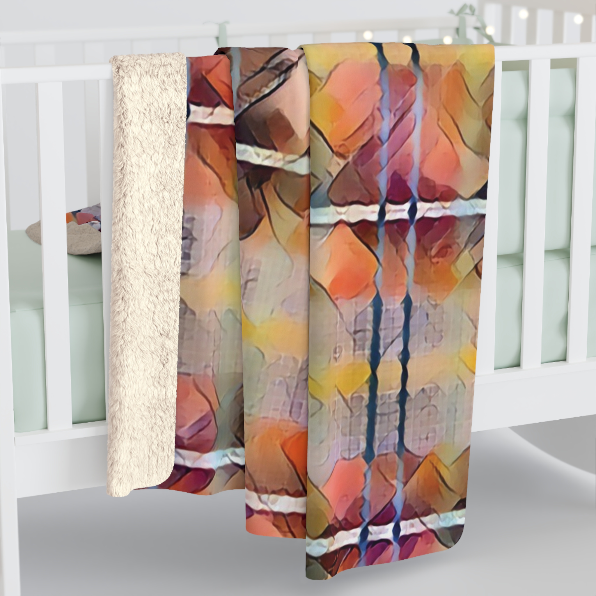 Grab a mug of cocoa and curl up in this super-soft blanket! Its soft and velvety top is covered in the beautiful artwork of “Fall Plaid” while the fluffy white underside keeps you warm and cozy.