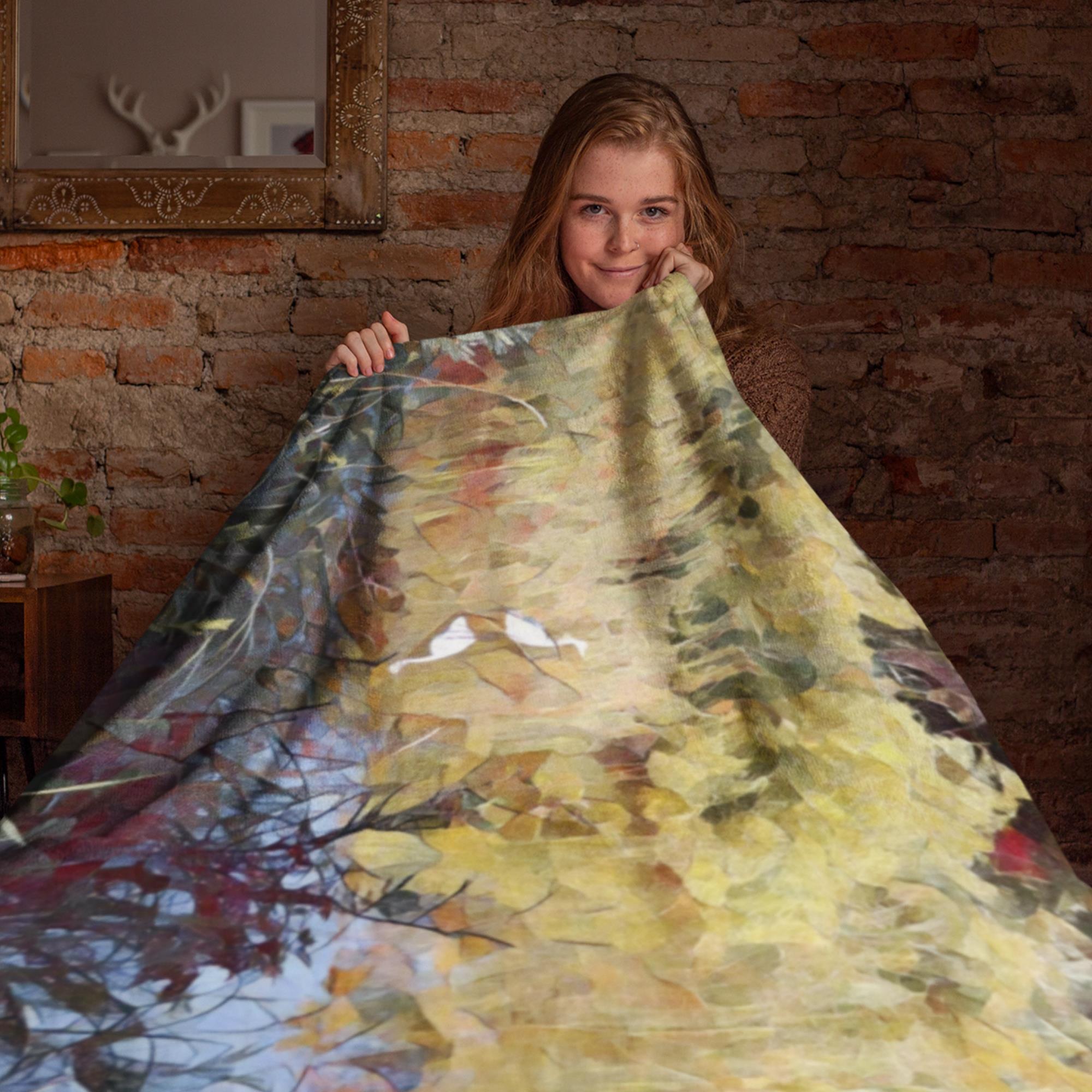 Grab a mug of cocoa and curl up in this super-soft blanket! Its soft and velvety top is covered in the beautiful artwork of “Pond Bird” while the fluffy white underside keeps you warm and cozy.