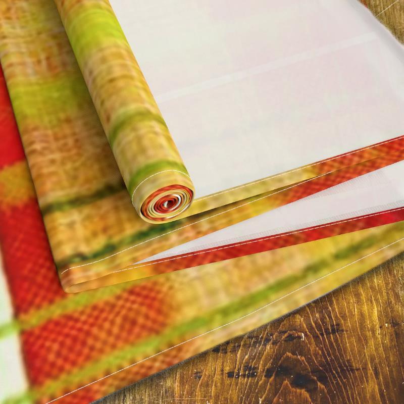 This runner’s bright yellow and red really stand out on a table! Light and easy to arrange, this table runner also pairs nicely with the “Sunny” kitchen accessories from the “Plaids” Collection.