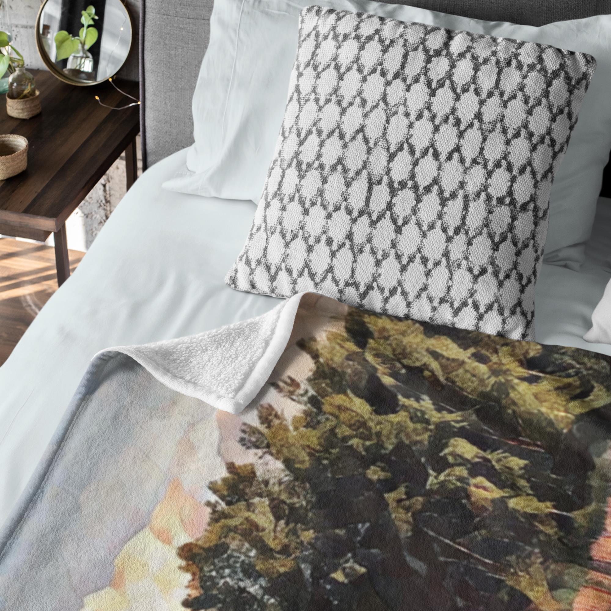 This throw blanket is a lovely accent to drape on a bed, couch, chair, or blanket ladder. Its lightweight, velveteen fleece is extremely soft and cozy. Whatever size you choose, this blanket pairs nicely with the throw pillows from the “Kayak on Lake” Collection.