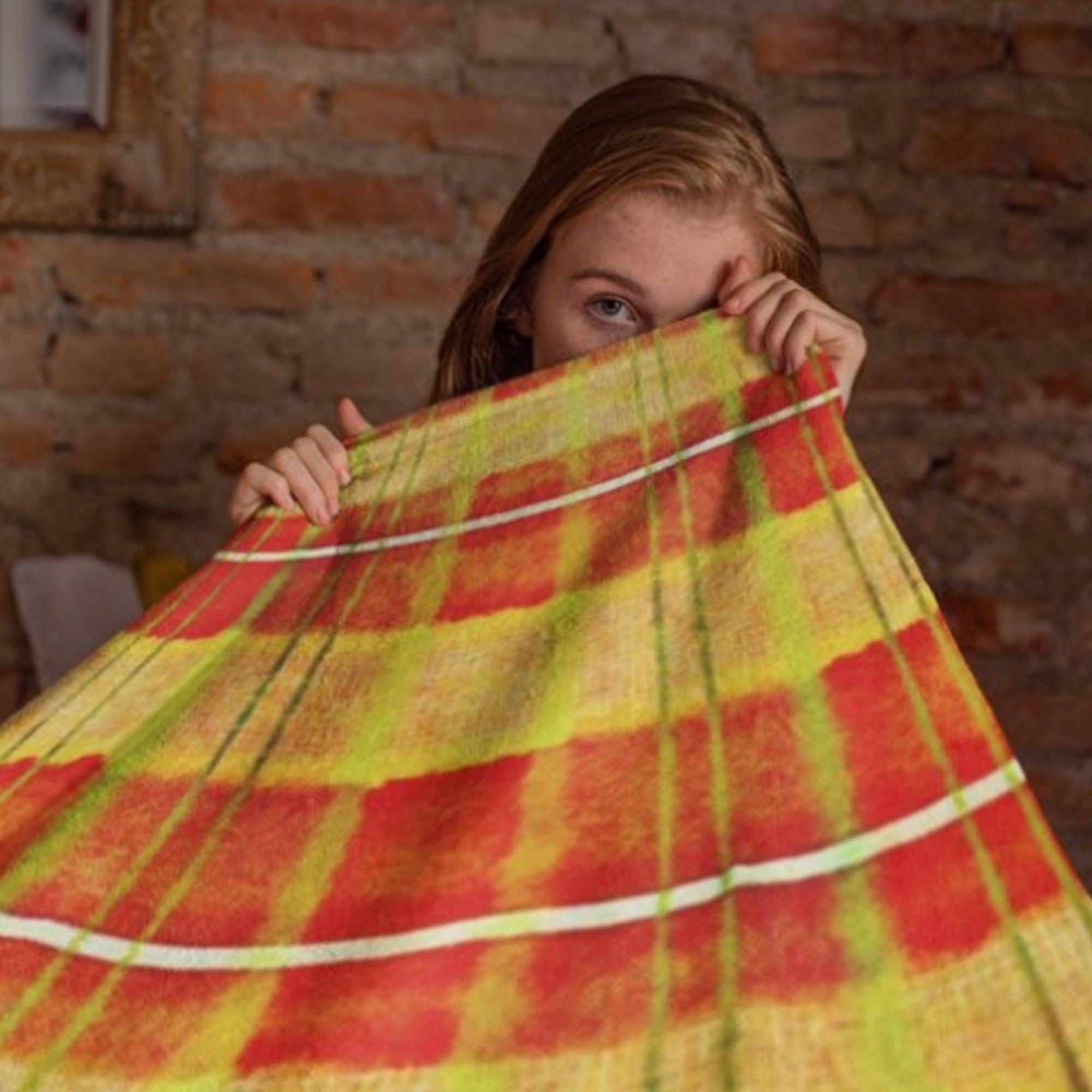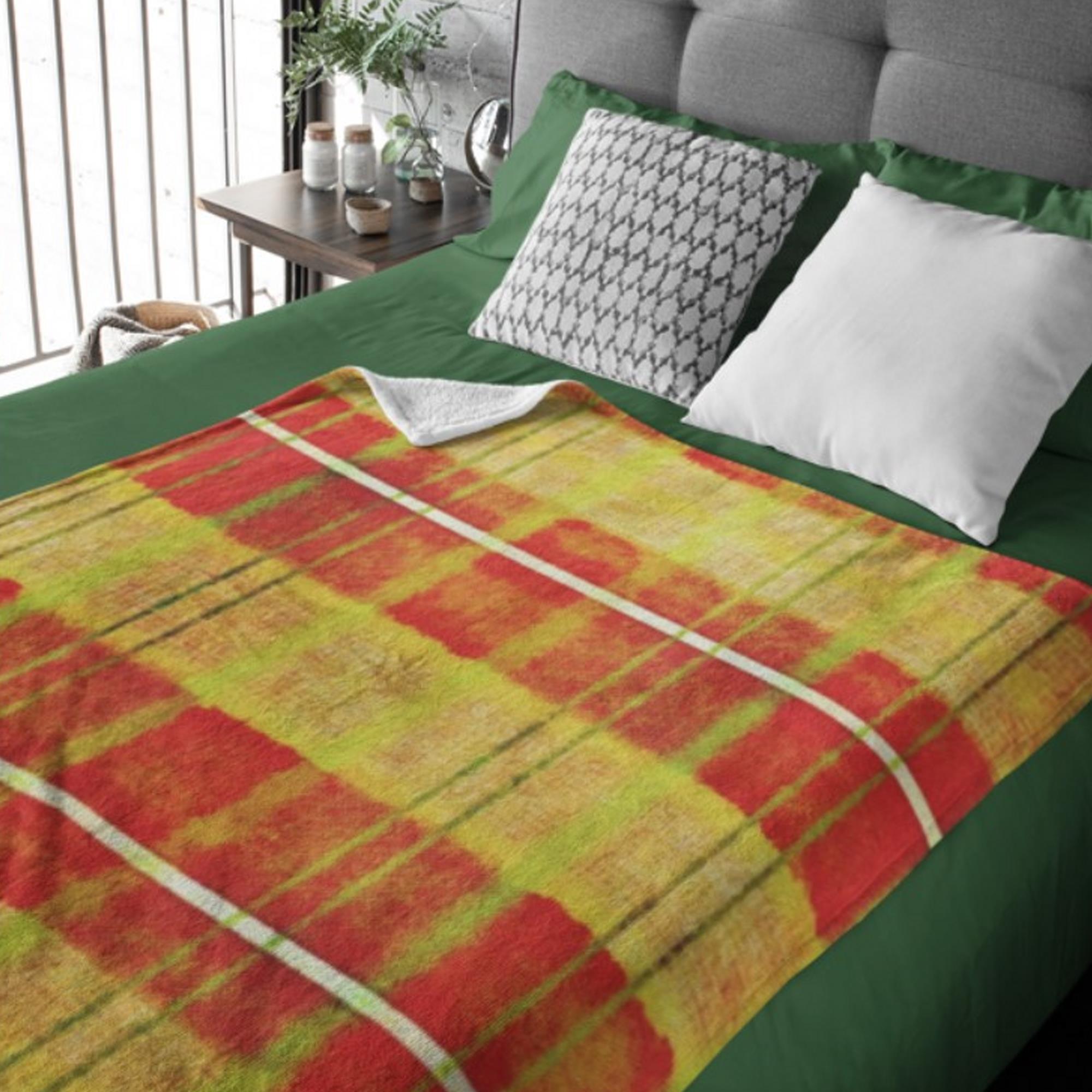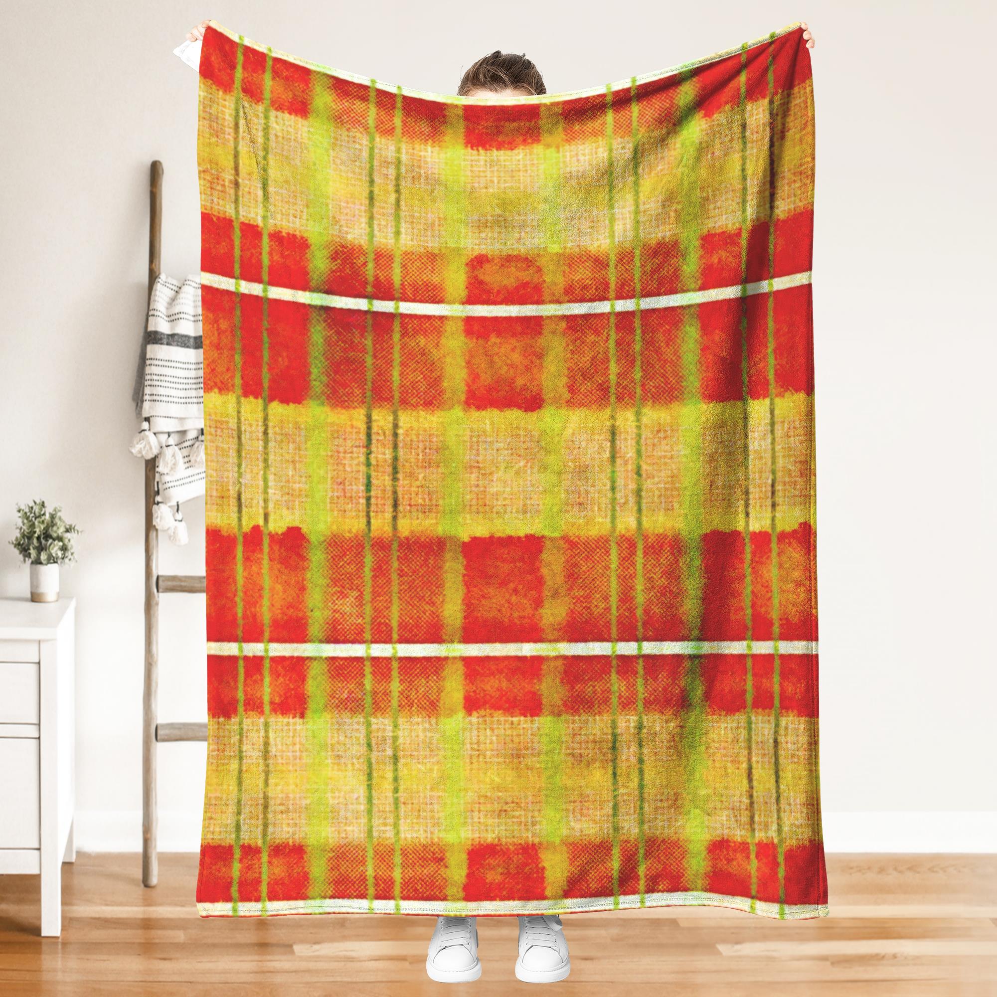 This throw blanket is a vibrant accent to drape on a bed, couch, chair, or blanket ladder. Its lightweight, velveteen fleece is extremely soft and cozy. Whatever size you choose, this blanket pairs nicely with the “Sunny” throw pillows from the “Plaids” Collection.