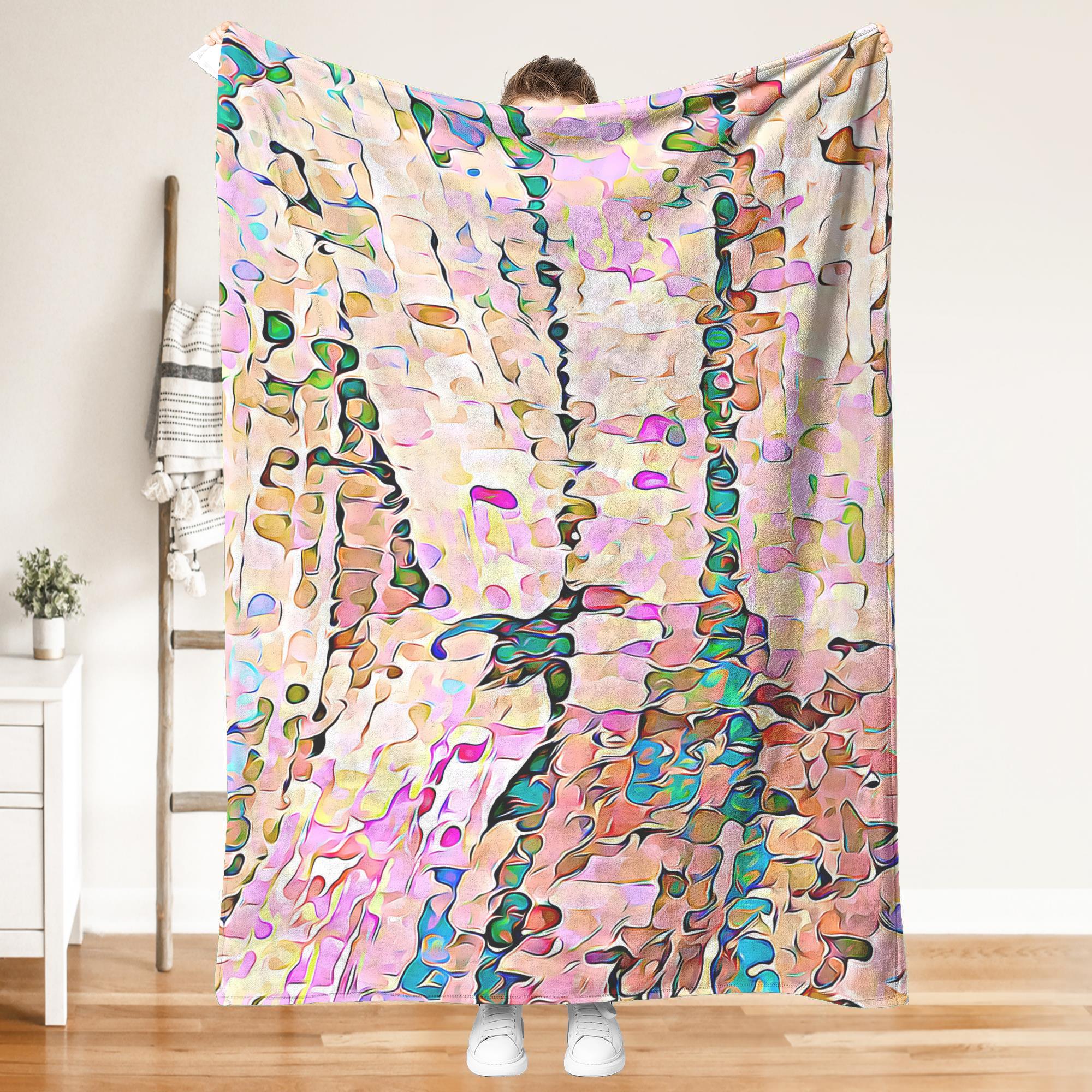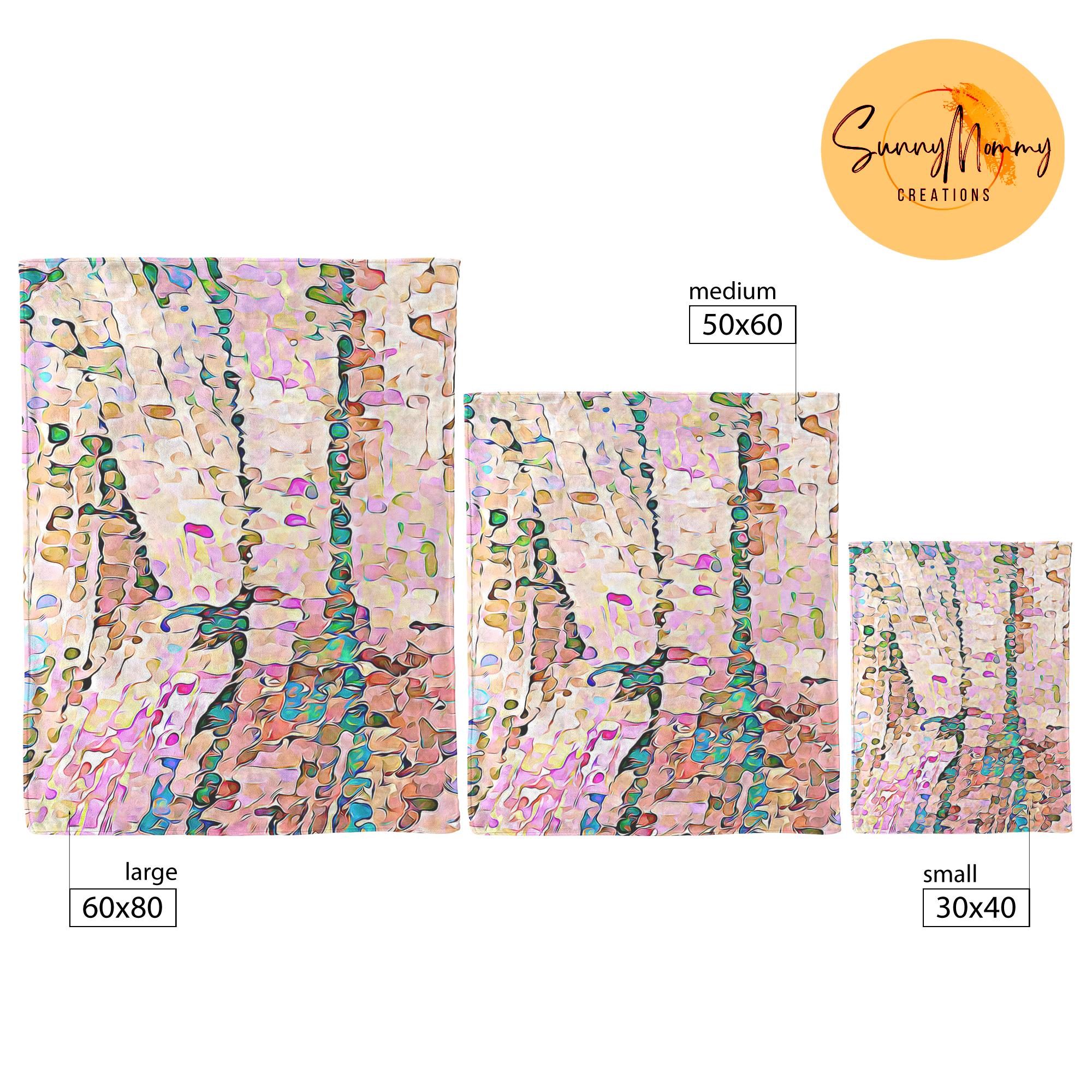 This throw blanket is a cool accent to drape on a bed, couch, chair, or blanket ladder. Its lightweight, velveteen fleece is extremely soft and cozy. Whatever size you choose, this blanket pairs nicely with the throw pillows from the “Tiled Rainbow” Collection.