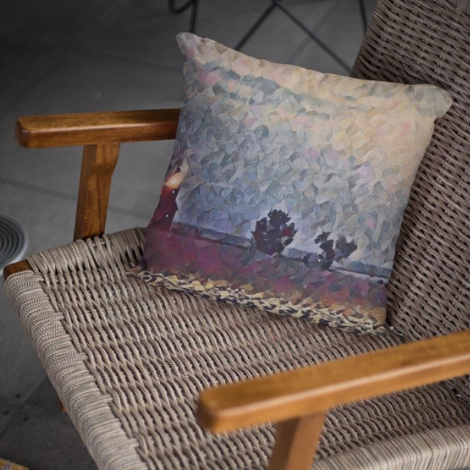 With its cool wash of blues, purples, and the glow of a lighthouse, this single accent pillow from the “Beach Night” Collection is cool enough to stand on its own, or combine it with the collection’s blanket for a comfy set.