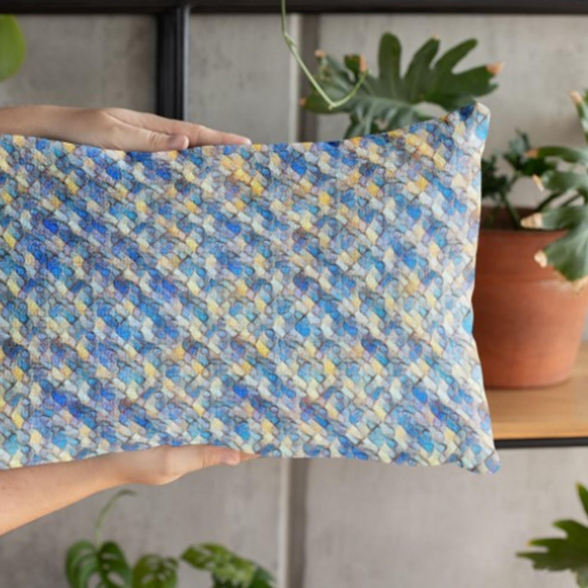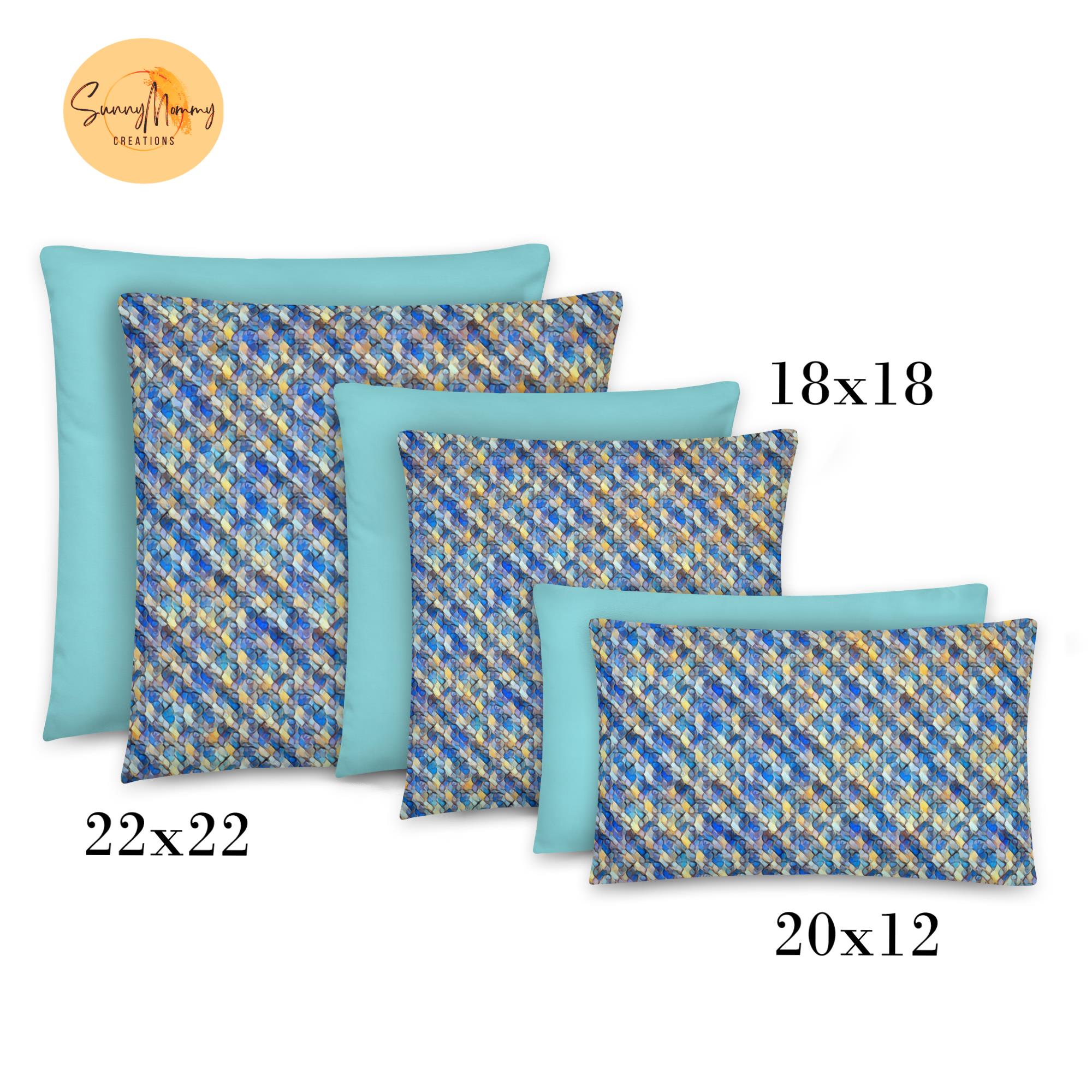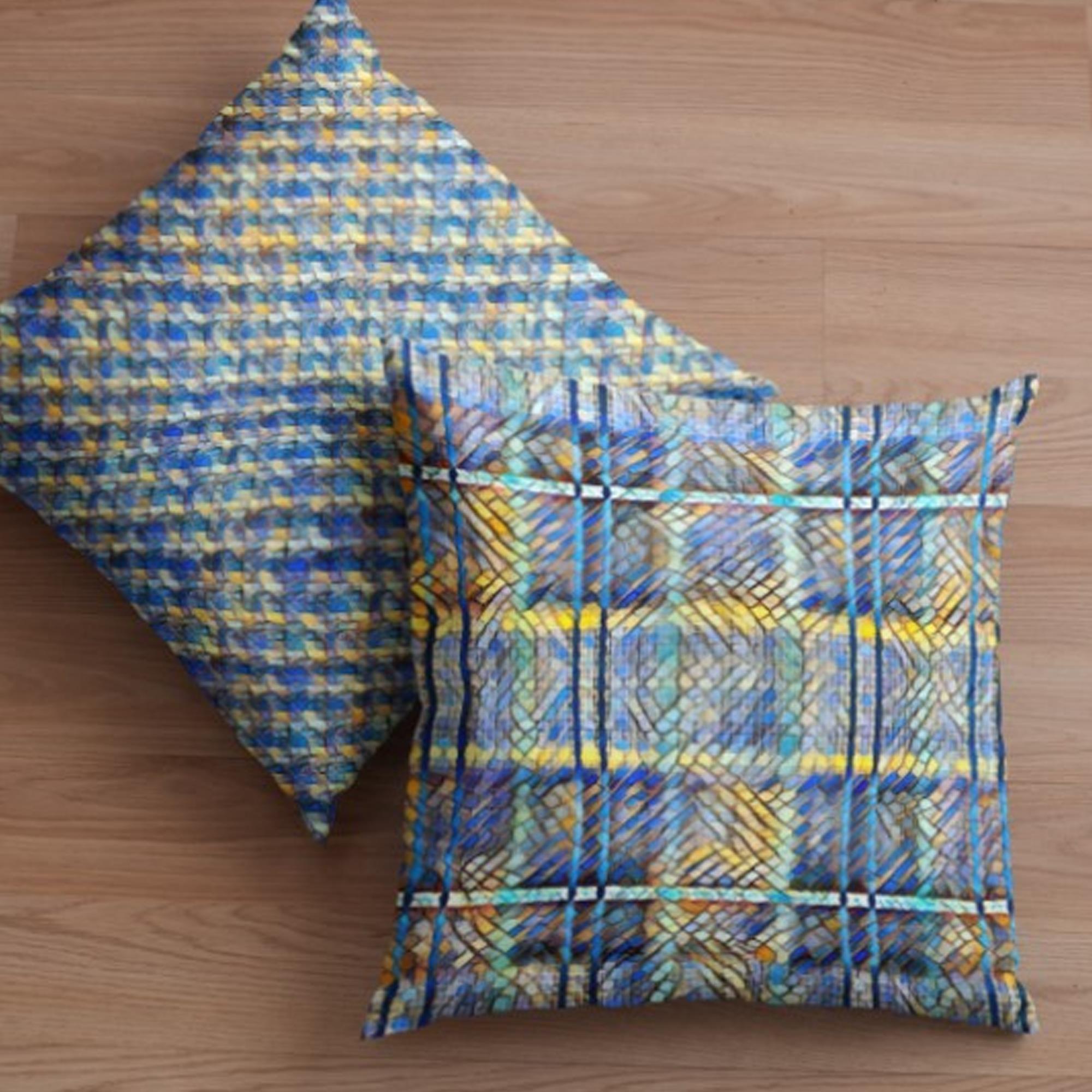 One of two “Blue Mosaic” throw pillows in the “Plaids” Collection. Display alone or mix and match with others for complementing pillow arrangements. Also pairs nicely with the collection’s “Blue Mosaic” blanket for a comfy set.