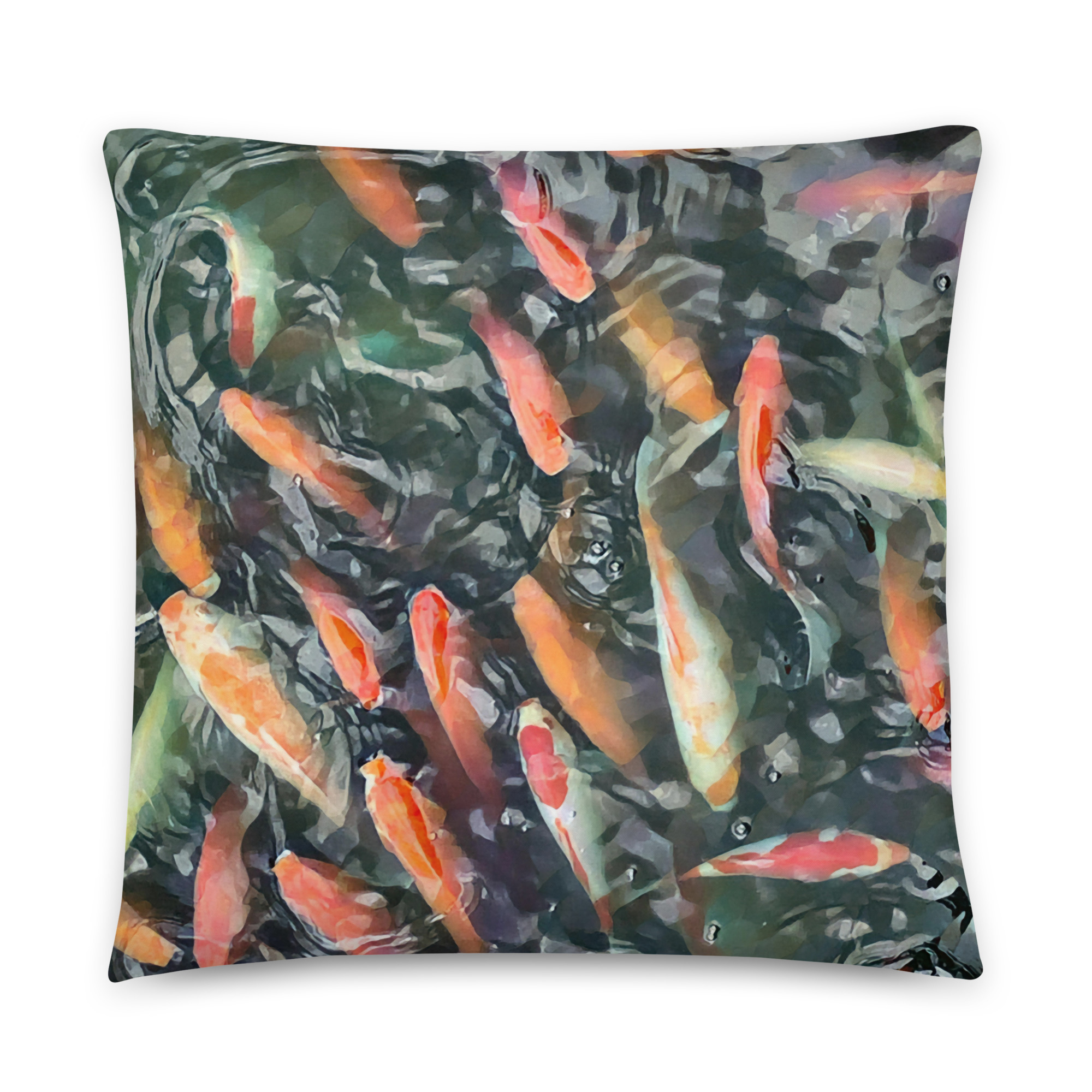 Painted with soft watery details, this single accent pillow from the “Koi Frenzy” Collection is cool enough to stand on its own or combine with matching pillows in different sizes.