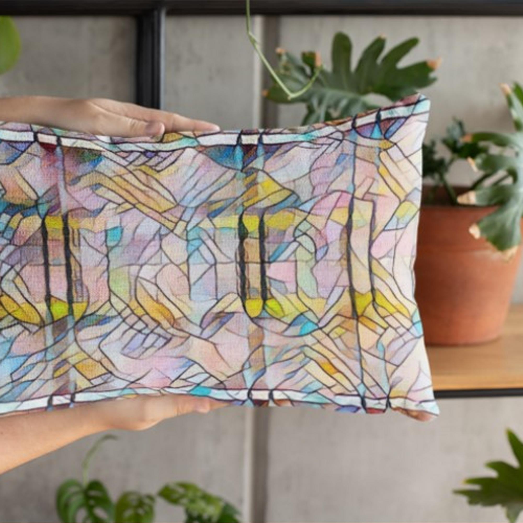 One of two “Pink Mosaic” throw pillows in the “Plaids” Collection. Display alone or mix and match with others for complementing pillow arrangements. Also pairs nicely with the collection’s “Pink Mosaic” blanket for a comfy set.