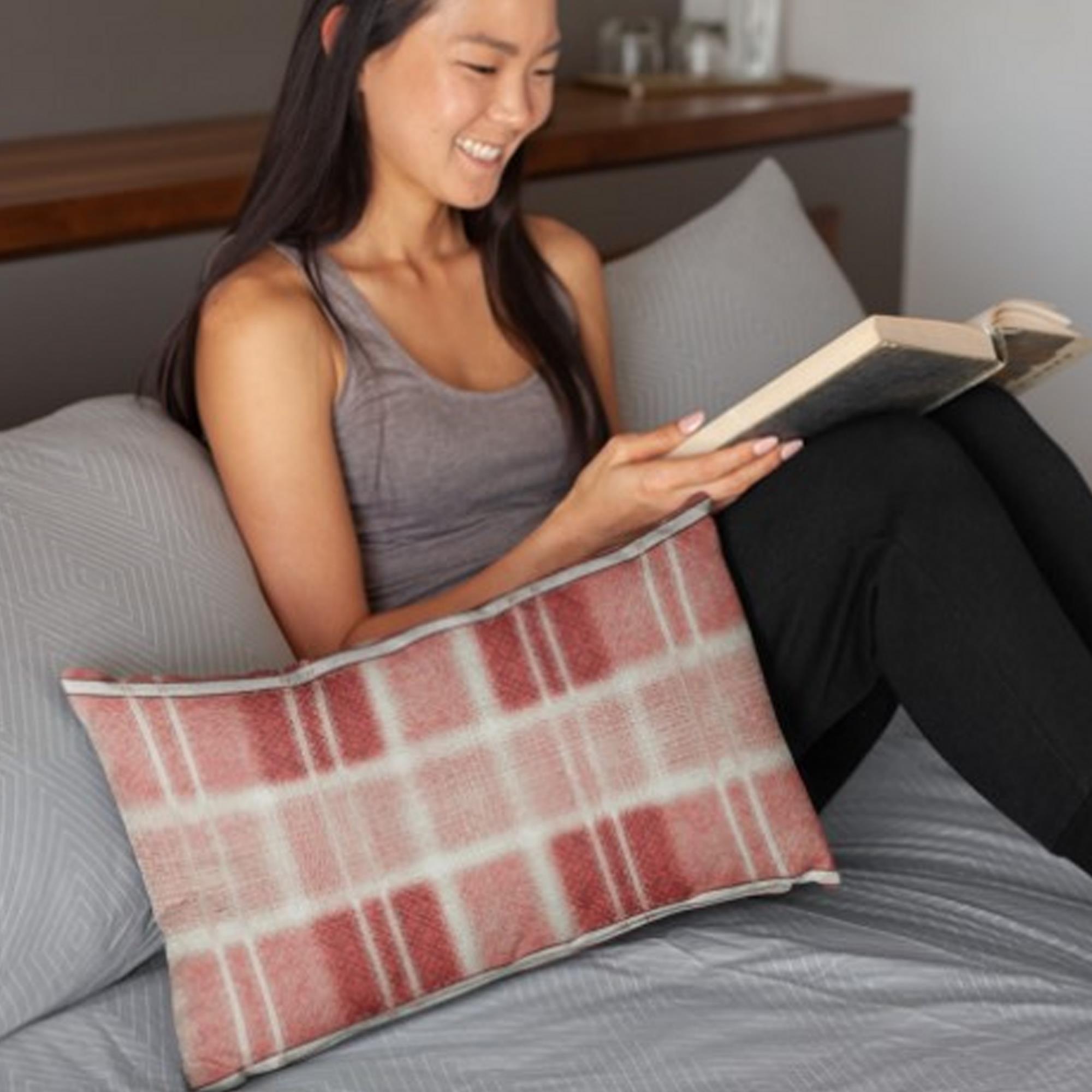 At first this design might look like ordinary red and white plaid, but close up you’ll see swirling details. This single “Red” pillow from the “Plaids” Collection can be displayed alone or mixed and matched with other pillows to add a festive touch to your living room, bedroom, or office. Goes well with the collection’s “Red” or “Green” blanket for a comfy set.