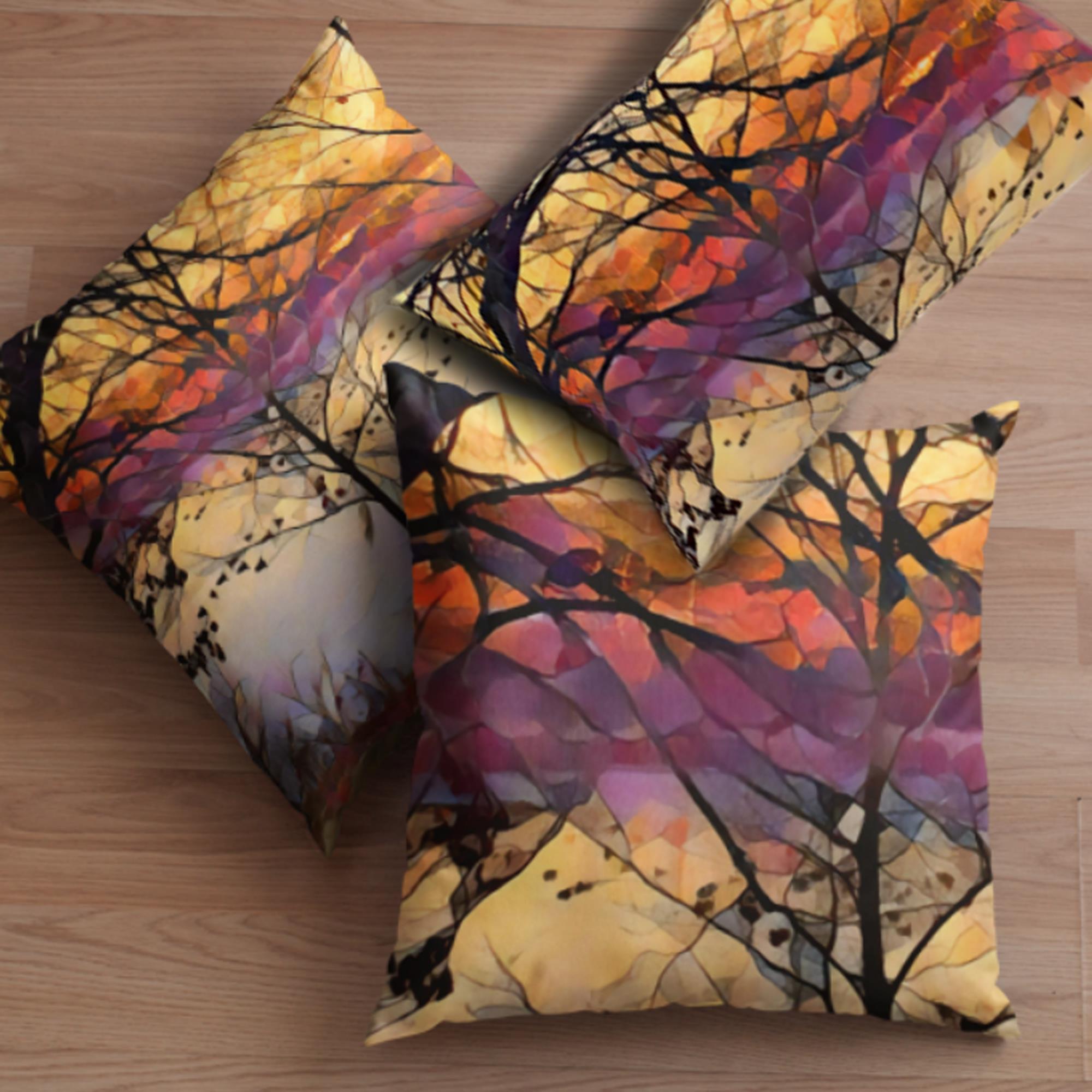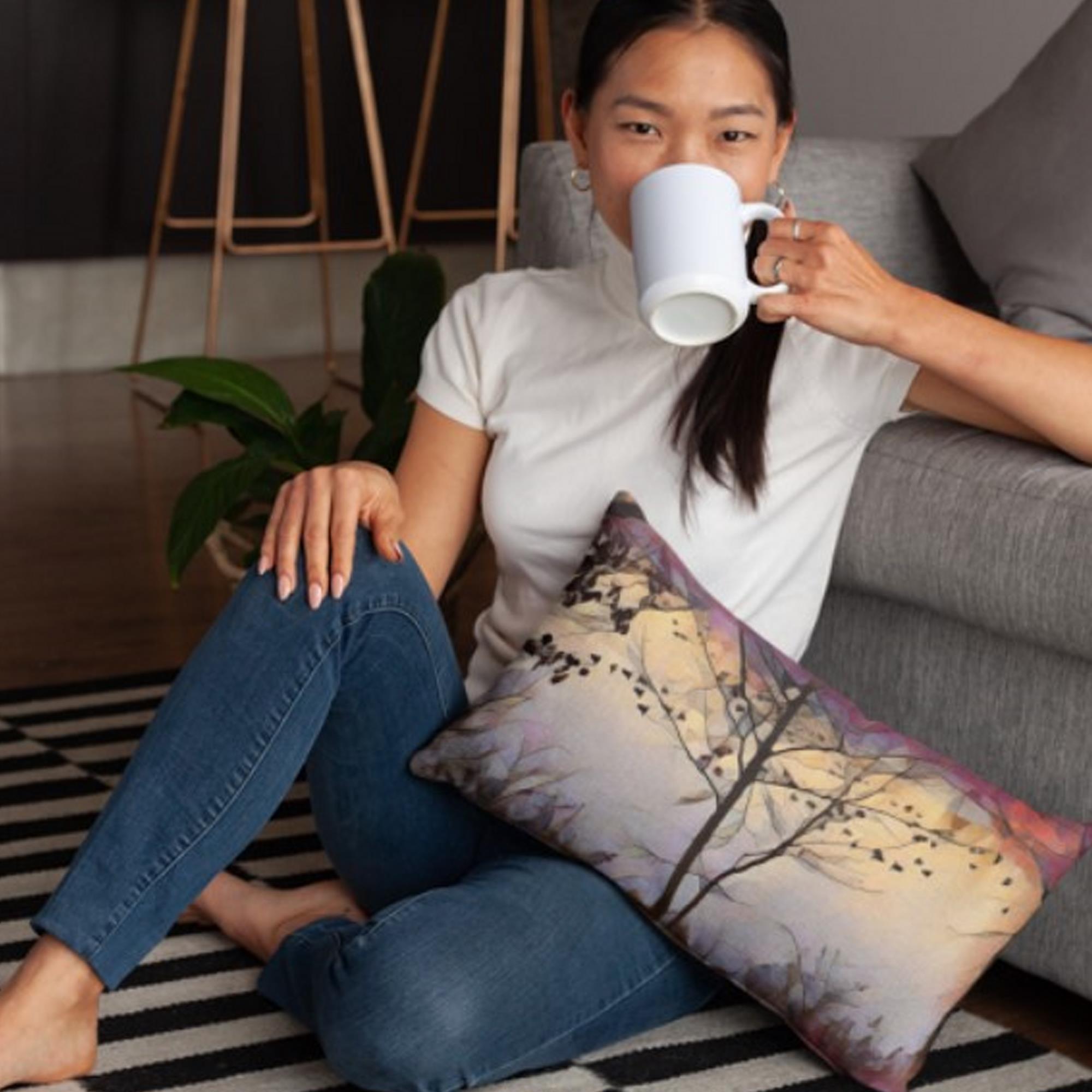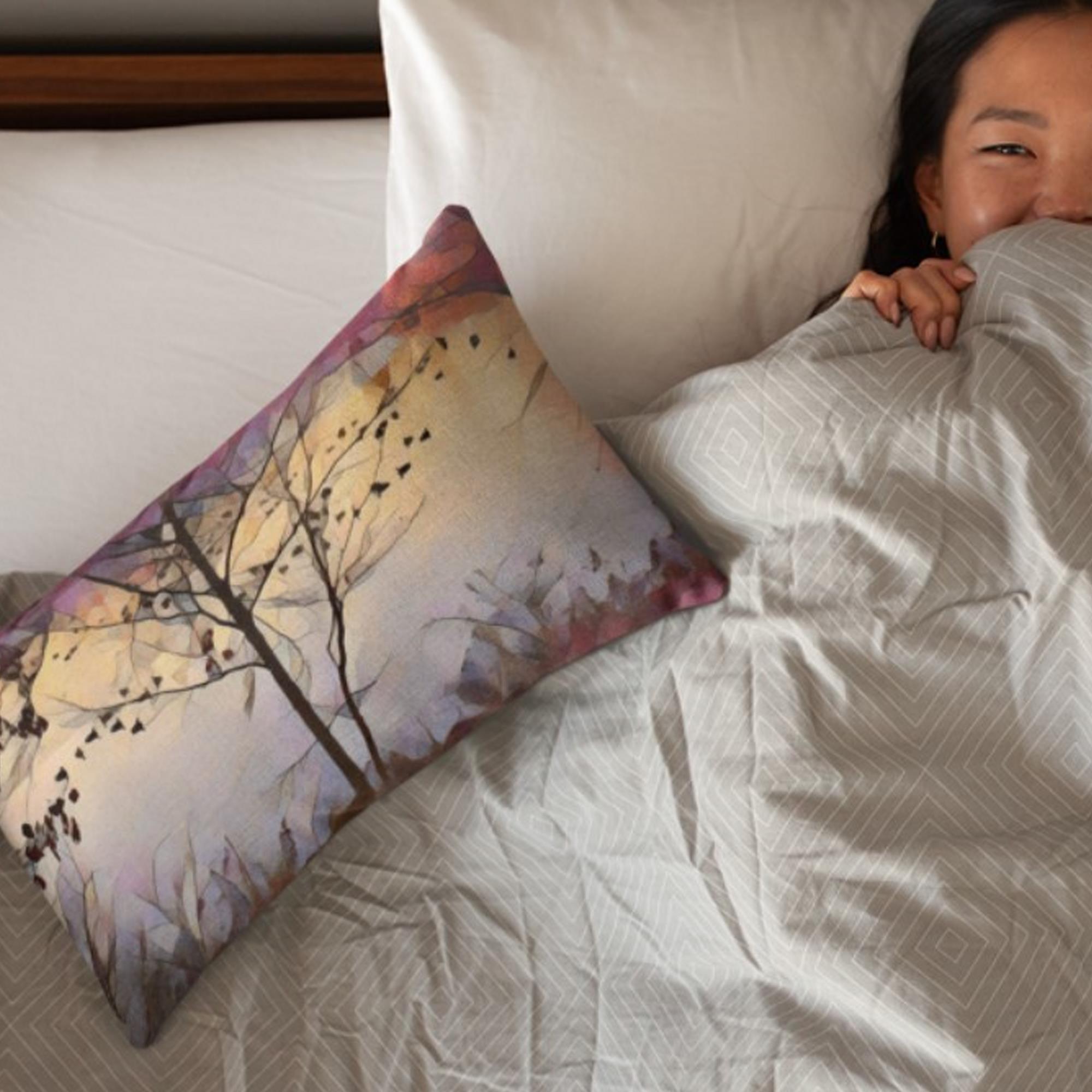 One of two “Rich” throw pillows in the “Sunset on Pond” Collection. Display alone or mix and match with others for complementing pillow arrangements. Also pairs nicely with the collection’s “Rich” blanket for a comfy set.