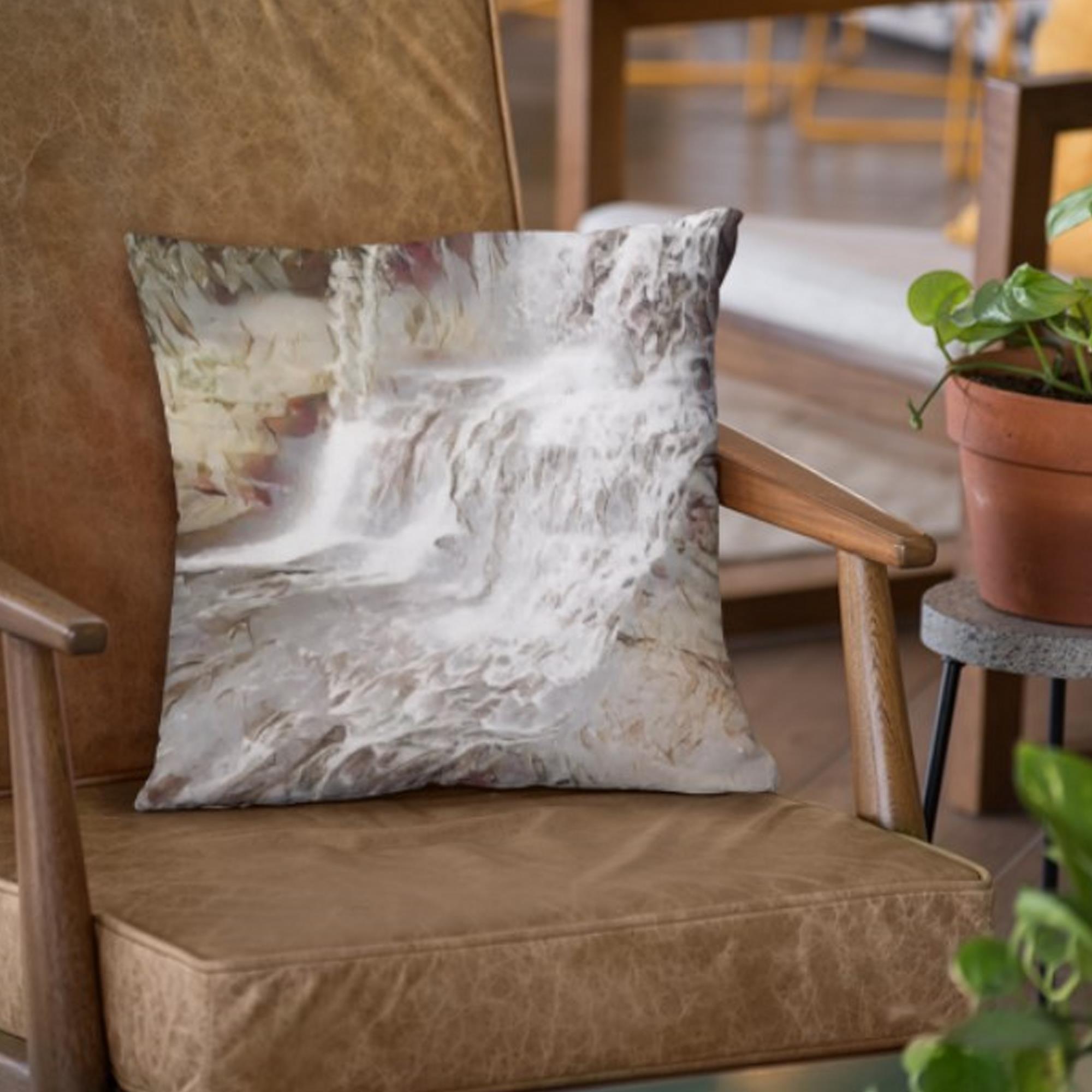 Displaying a painted waterfall scene, this single pillow from the “Waterfall Watercolor” Collection is charming enough to stand on its own, or combine it with the collection’s blanket for a comfy set.
