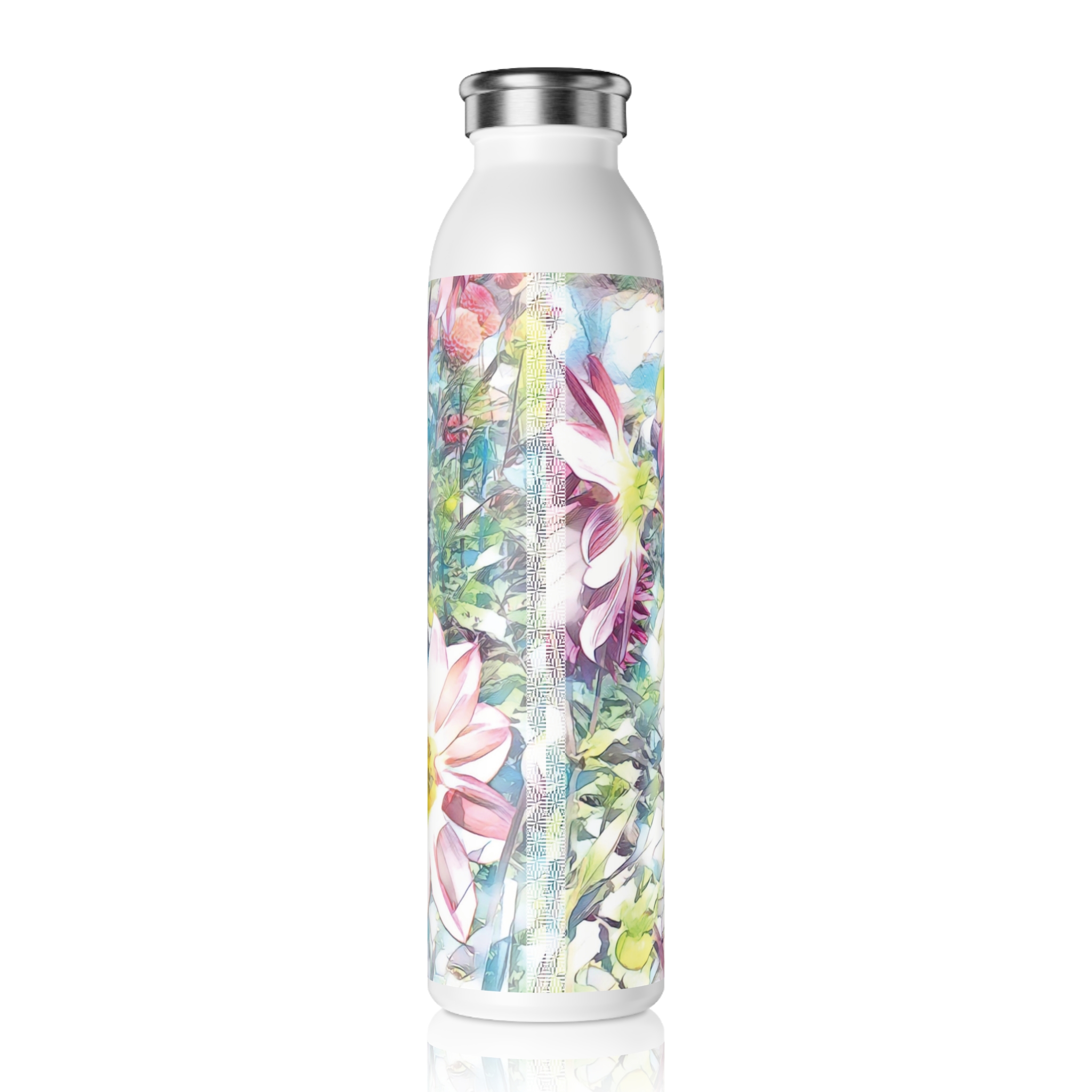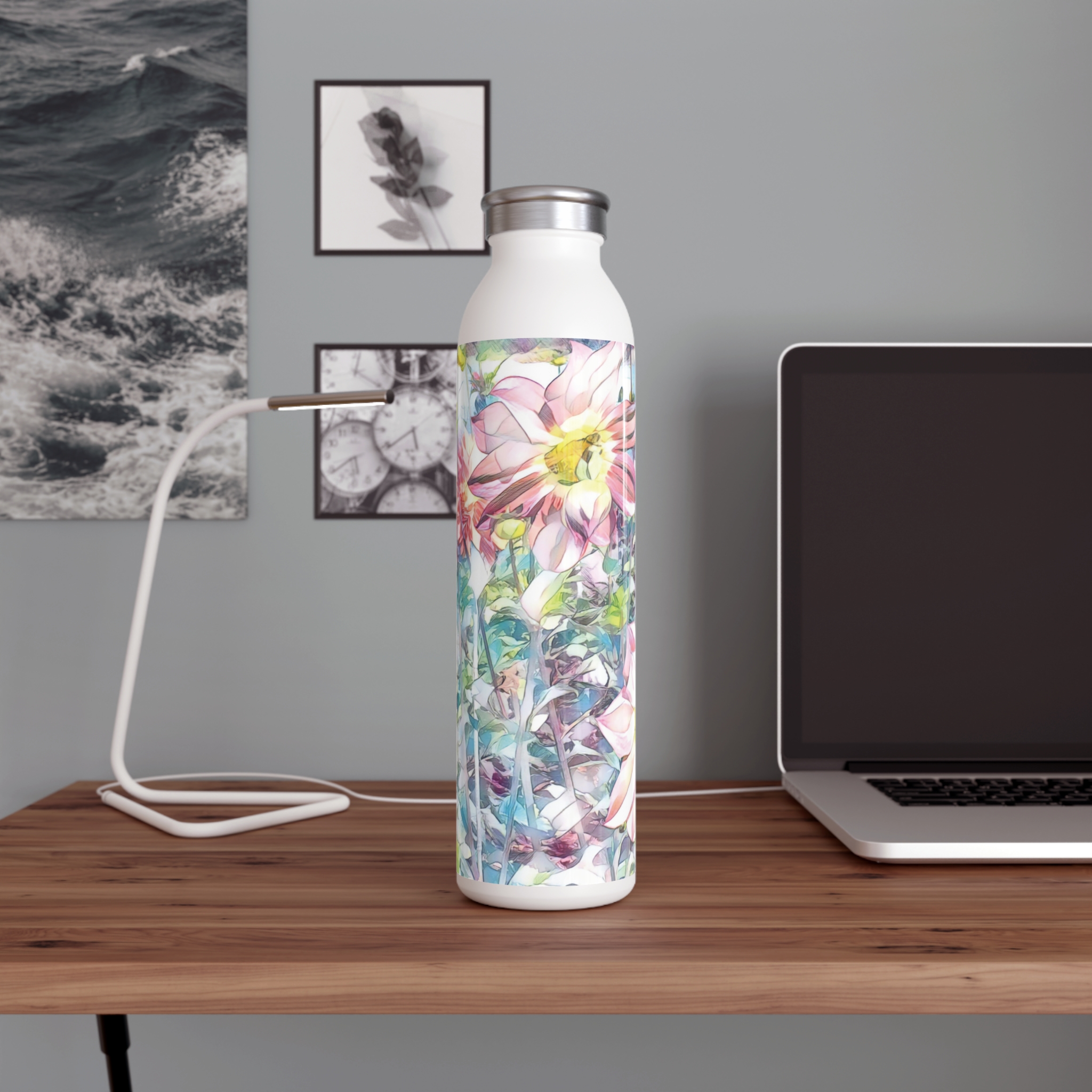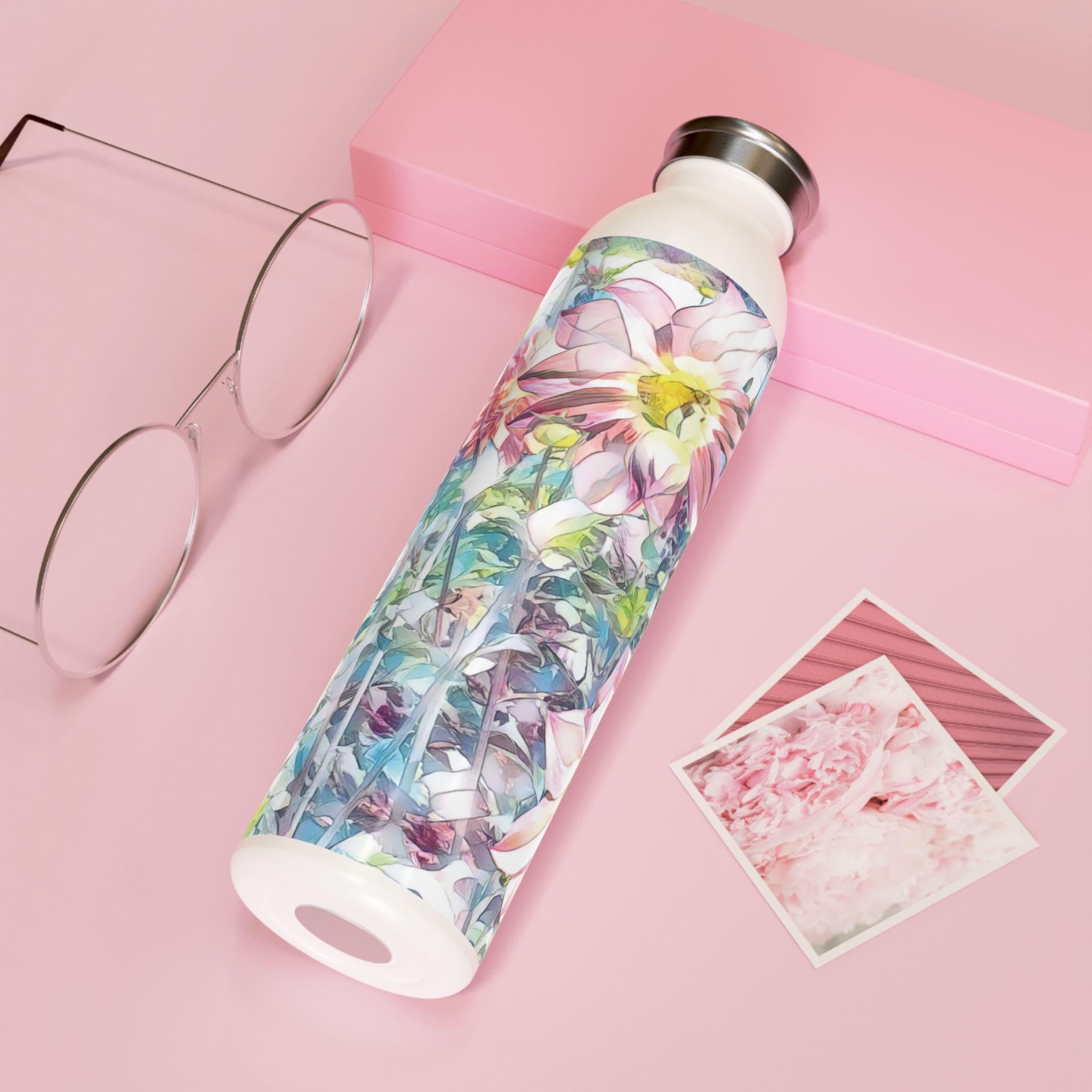 Fill up the white version of the “Magical Garden” Collection’s water bottle and take a piece of art wherever you go! This 20-ounce bottle is easy to refill and seals tight for worry-free storage in your bag, purse, or car. With a double-wall stainless steel frame, this water bottle utilizes vacuum insulation to keep both hot and cold drinks at perfect temps for hours.
