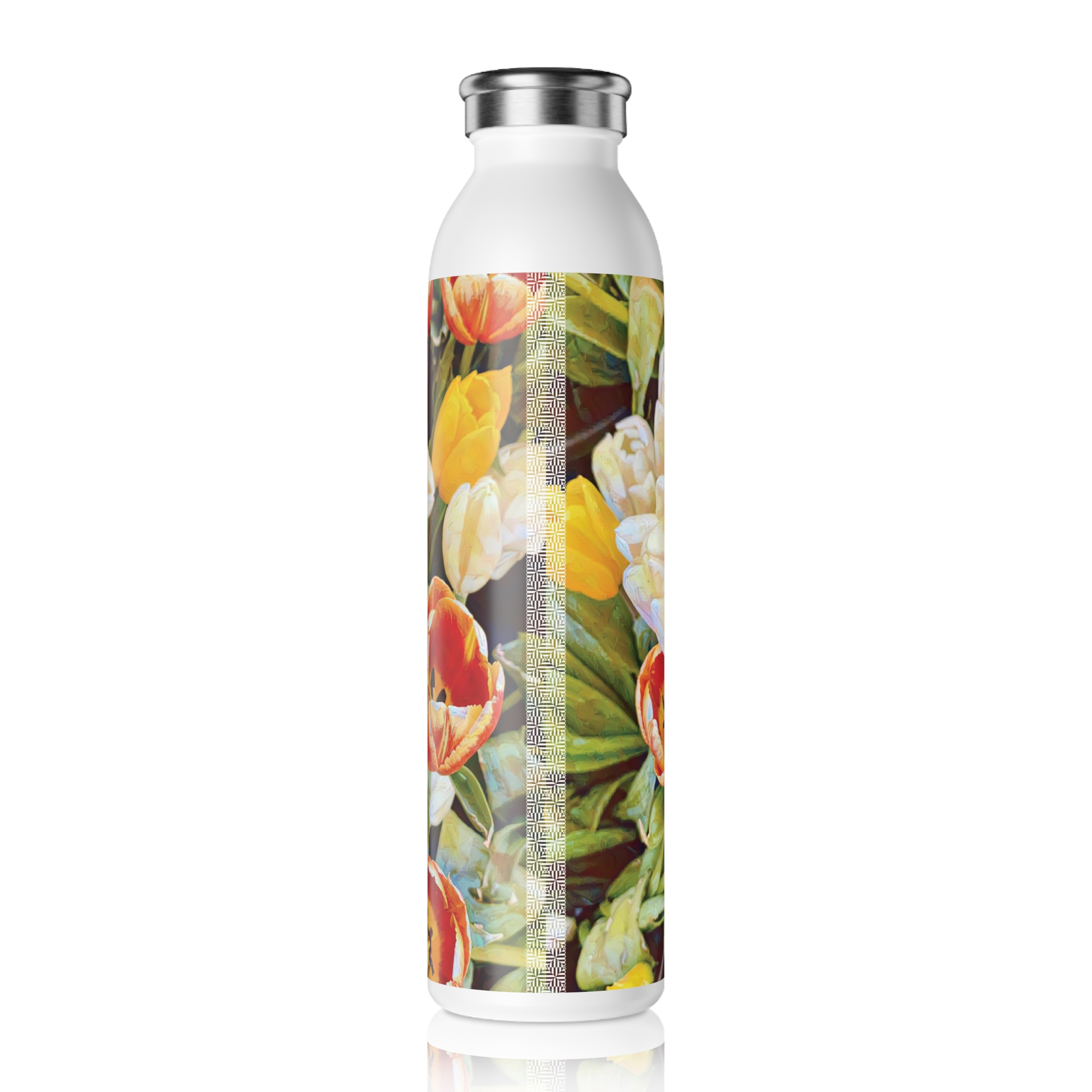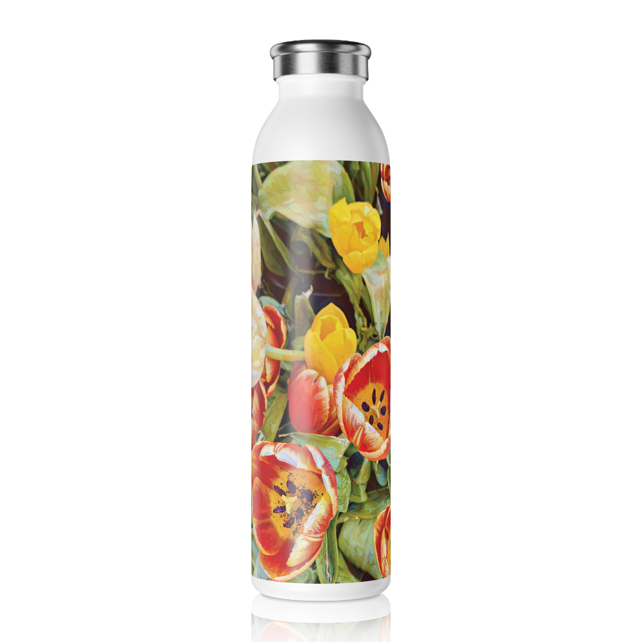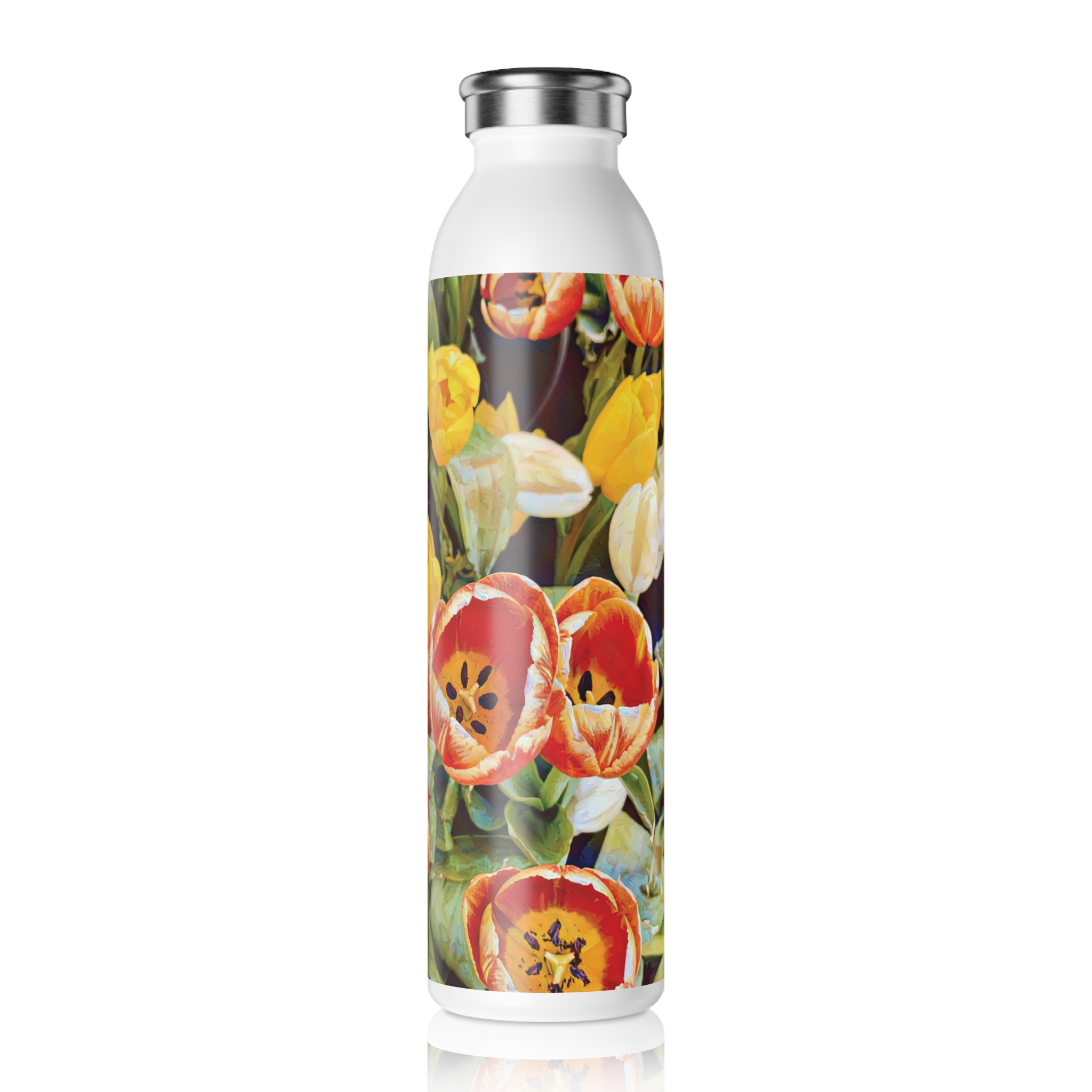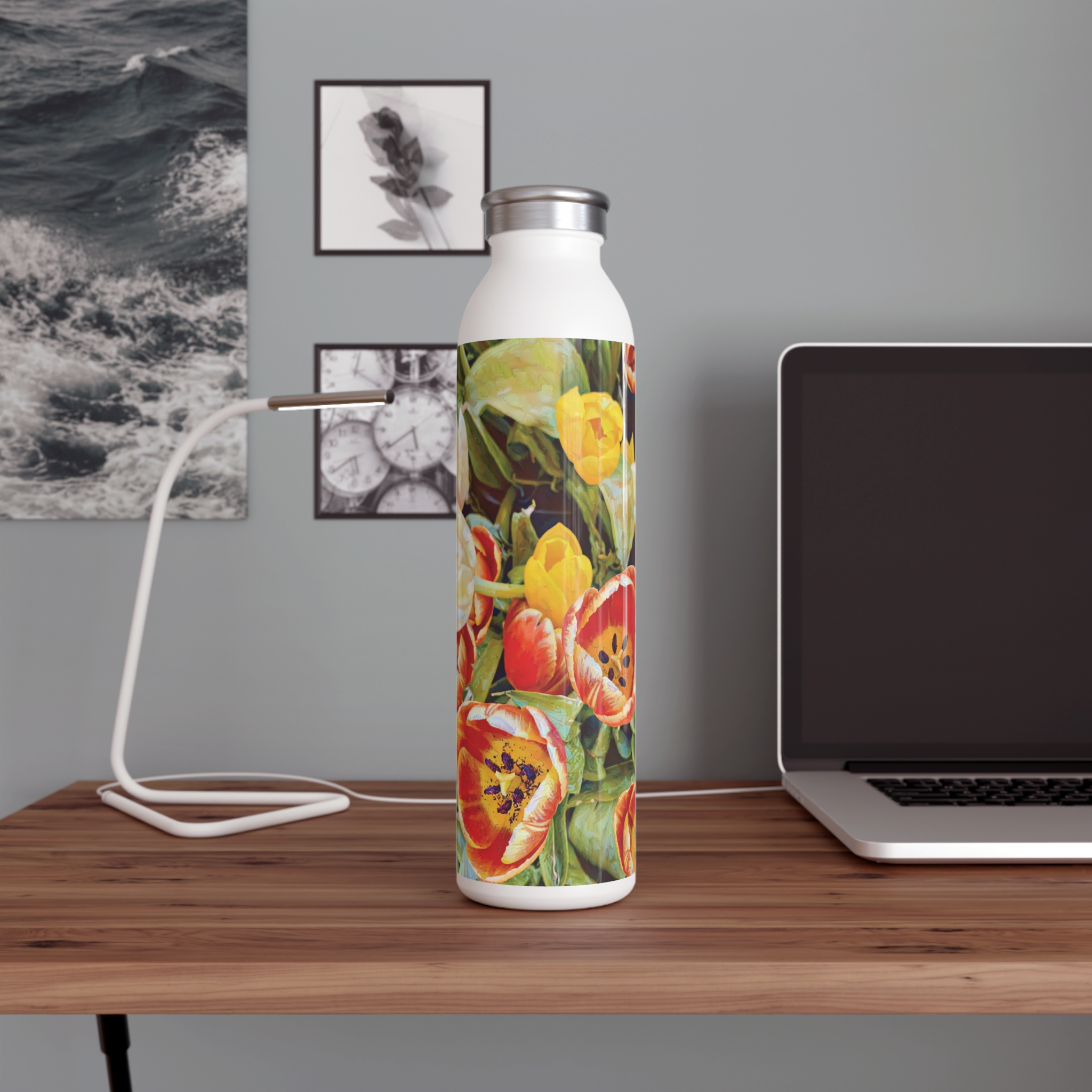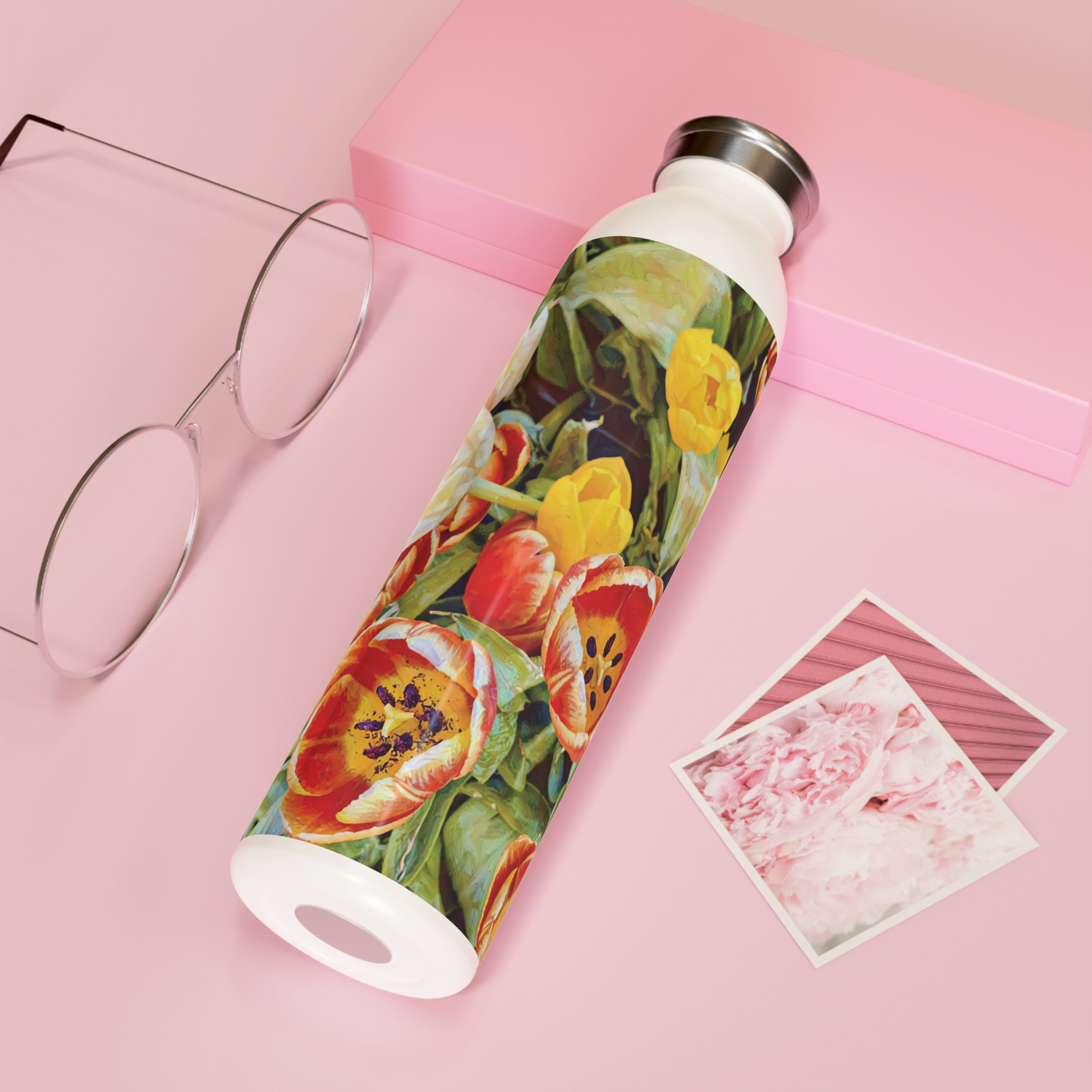 Fill up the “Red to Yellow Flowerbeds” Collection’s water bottle and take a piece of art wherever you go! This 20-ounce bottle is easy to refill and seals tight for worry-free storage in your bag, purse, or car. With a double-wall stainless steel frame, this water bottle utilizes vacuum insulation to keep both hot and cold drinks at perfect temps for hours.